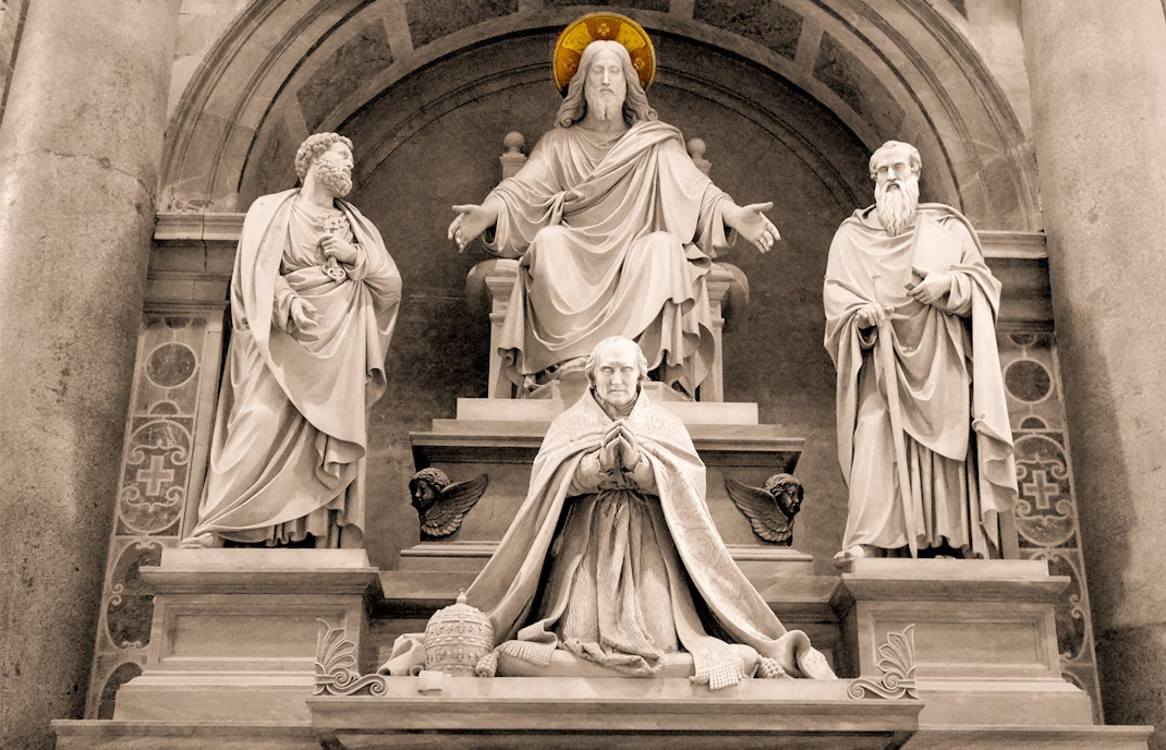 Giáo hội Công giáo ngay từ xa xưa đã nhấn mạnh, và thậm chí, đã xác định thành tín điều rằng chính Chúa Giêsu Kitô đã trao quyền lãnh đạo Giáo hội cho thánh Phêrô và đã muốn chức vụ này (cũng như chính Giáo hội) phải được tiếp tục cách trường tồn. Và dưới sự dẫn dắt của Chúa Thánh Thần, chức vụ này được tiếp tục nơi quyền lãnh đạo hay quyền giám mục của Giáo hội tại Rôma, nơi chính Phêrô (cũng như Phaolô) đã lãnh đạo Giáo hội và đã tử đạo, cũng là thủ đô Đế quốc Rôma và là trung tâm truyền giáo quan trọng hàng đầu của Giáo hội.