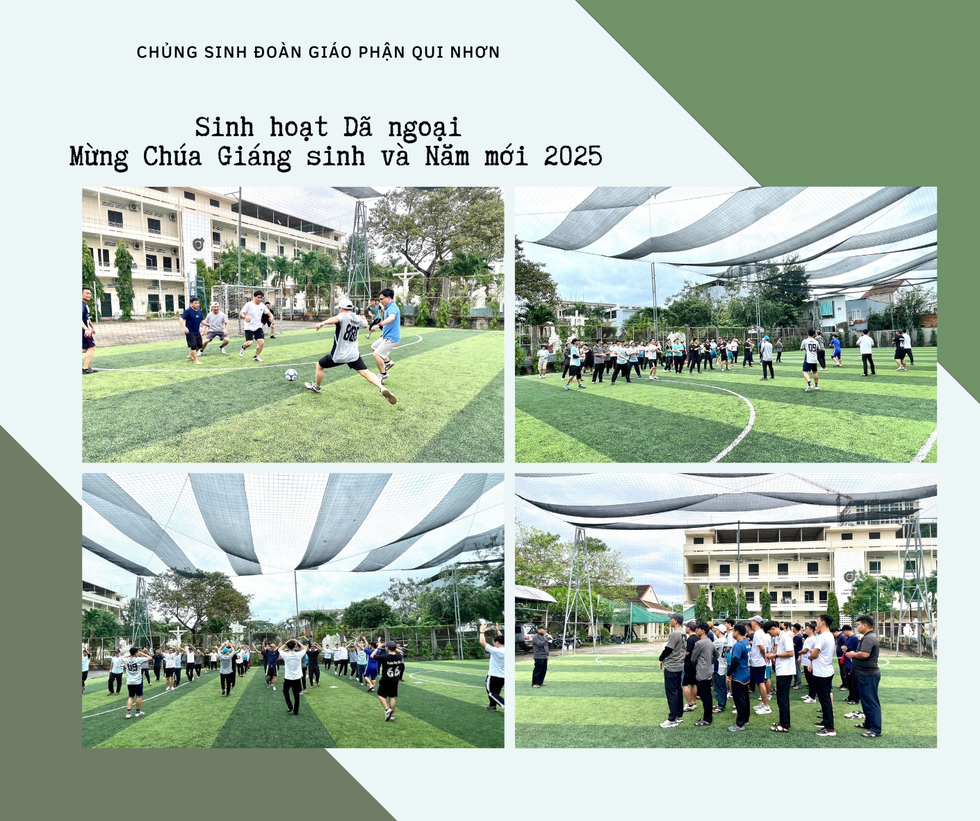 Cùng với toàn thể cộng đoàn Đại Chủng viện, anh em đã tham dự thánh lễ mừng Đức Maria - Mẹ Thiên Chúa, với ý hướng dâng lời cầu nguyện, khẩn xin Thiên Chúa ban hòa bình cho thế giới, cho mỗi con người và mọi tâm hồn đang tìm kiếm sự bình an. Sau Thánh lễ, anh em cùng với Cha đồng hành Anrê di chuyển đến cơ sở của Dòng Ngôi Lời - Thánh Giuse, nơi diễn ra chương trình. Tại đây, tất cả cùng tham gia vào các hoạt động thể thao đầy hứng khởi. Đó là những trận bóng chuyền và bóng đá diễn ra sôi nổi, kịch tính, với tinh thần thi đấu đầy nhiệt huyết và đoàn kết của các đội. Những pha bóng đẹp mắt, những tiếng hò reo vang dội, và những tràng pháo tay cổ vũ thổi bùng lên khí thế của tuổi trẻ, là minh chứng cho sự hăng say và nhiệt thành của các anh em chủng sinh - những người đang dấn thân theo Chúa Kitô với trái tim nhiệt huyết.