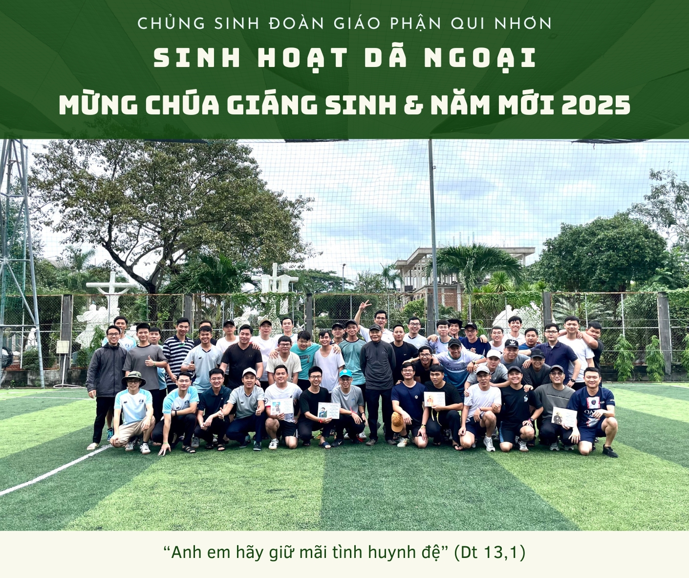 Sáng ngày 1 tháng 1 năm 2025, trong bầu khí hân hoan của Mùa Giáng Sinh 2024 và Năm Mới 2025, Chủng sinh đoàn Giáo phận Qui Nhơn tổ chức chương trình dã ngoại, với chủ đề “Anh em hãy giữ mãi tình huynh đệ” (Dt 13,1). Đây là dịp để tất cả anh em sinh hoạt cùng nhau, qua đó thêm sự gắn kết tình huynh đệ trong Chủng sinh đoàn.