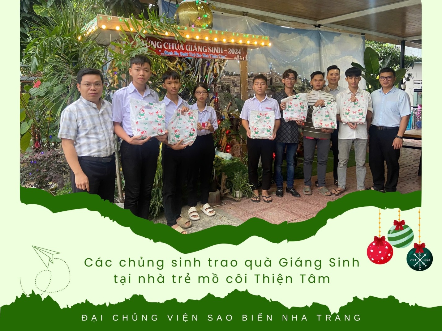 Dưới sự hướng dẫn của Cha đặc trách mục vụ, các chủng sinh đã tích cực tham gia quyên góp, chuẩn bị quà và thực hiện hành trình thăm viếng tại nhiều cơ sở quen thuộc trong thành phố Nha Trang, bao gồm: một bếp ăn từ thiện, cơ sở Khuyết tật Sao Mai, nhà trẻ mồ côi Thiện Tâm và Bệnh viện Da Liễu tỉnh Khánh Hoà.