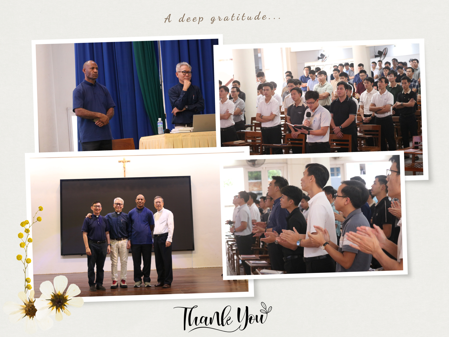 Kết thúc buổi chia sẻ, quý cha giáo và các chủng sinh bày tỏ lòng tri ân đến hai diễn giả. Những chia sẻ sâu sắc và thực tiễn của cha Michael Nguyễn Quang và cha Thomas Patrick không chỉ mở ra góc nhìn mới mẻ về thần học bối cảnh, mà còn khơi dậy lòng nhiệt huyết trong sứ vụ loan báo Tin Mừng. Buổi thuyết trình để lại nhiều ấn tượng đẹp và trở thành nguồn cảm hứng quý báu cho hành trình dấn thân trong tương lai của các chủng sinh.