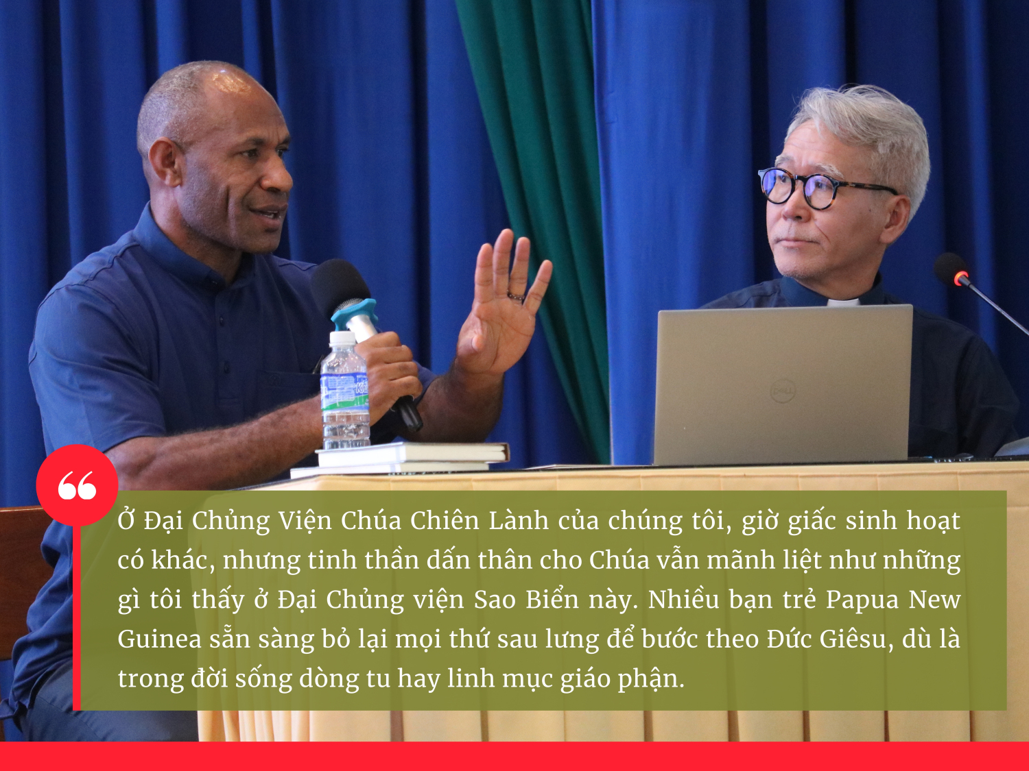 Cha chia sẻ thêm: “Ở Đại Chủng Viện Chúa Chiên Lành của chúng tôi, giờ giấc sinh hoạt có khác, nhưng tinh thần dấn thân cho Chúa vẫn mãnh liệt như những gì tôi thấy ở ĐCV Sao Biển này. Nhiều bạn trẻ PNG sẵn sàng bỏ lại mọi thứ sau lưng để bước theo Đức Giêsu, dù là trong đời sống dòng tu hay linh mục giáo phận.”