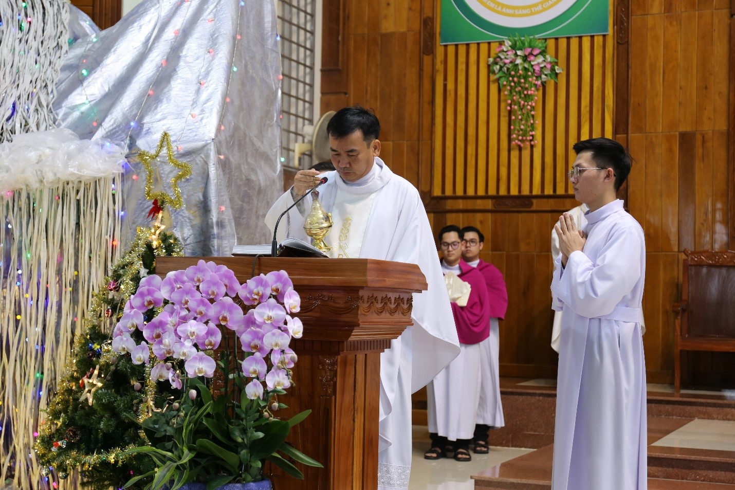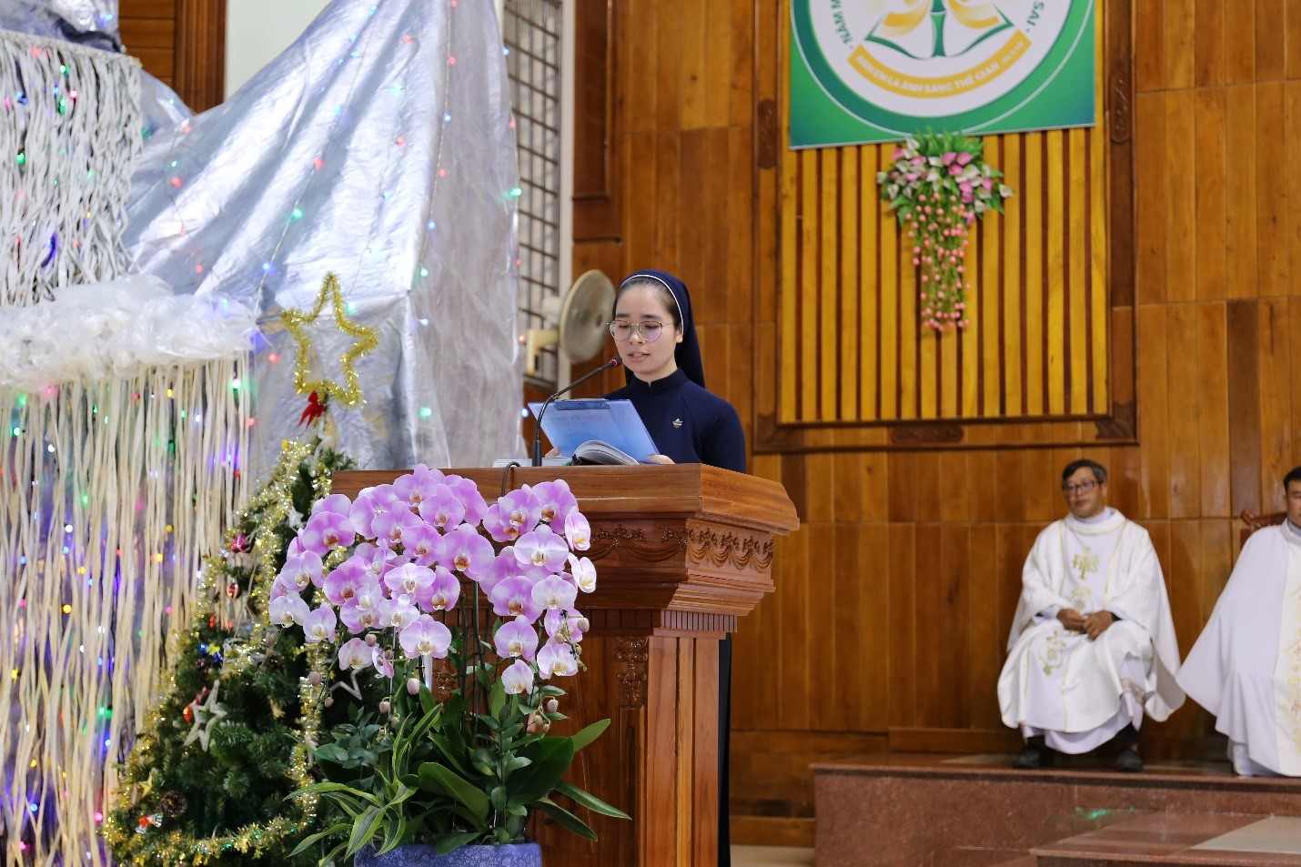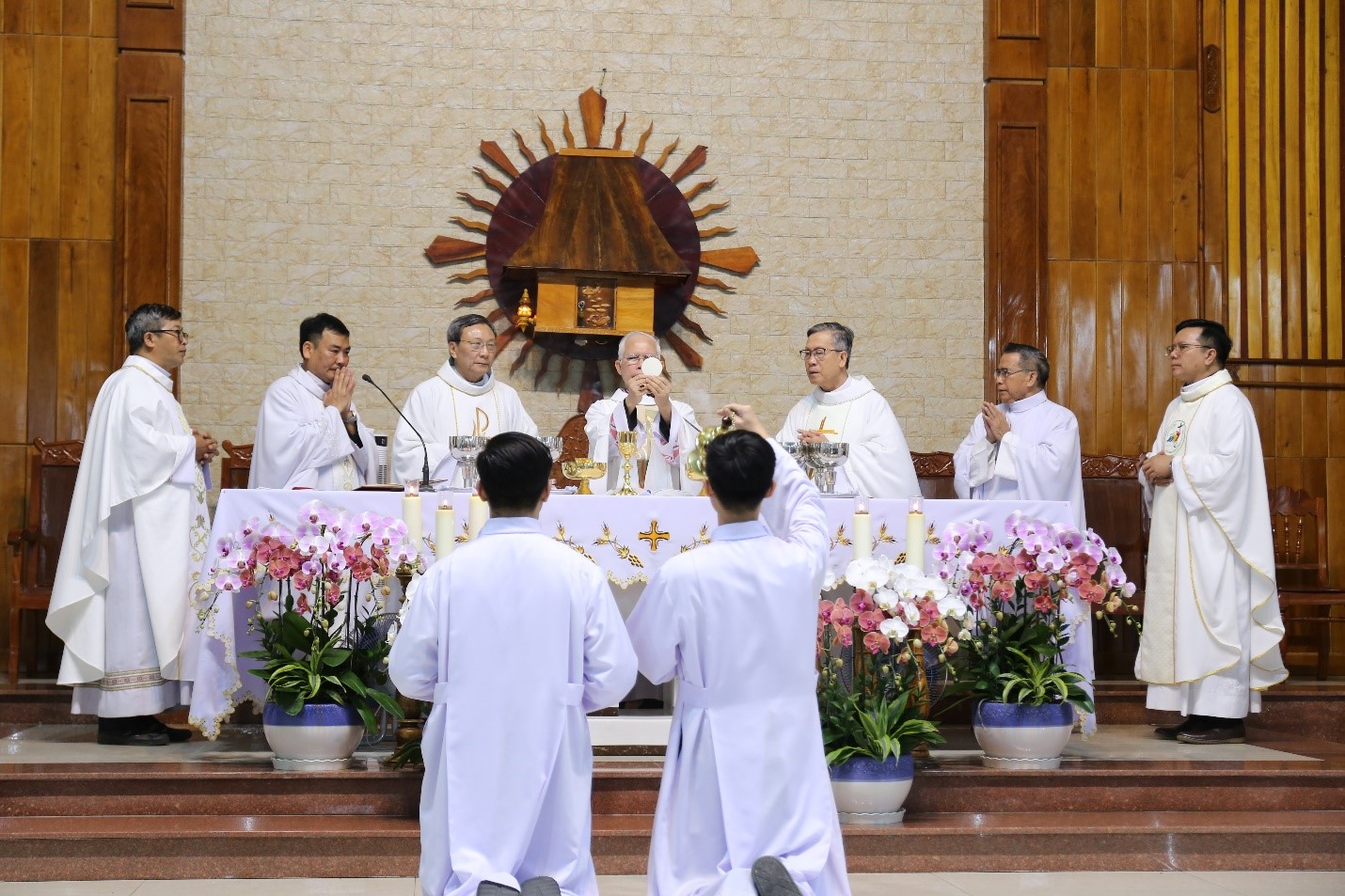 Vào lúc 16h00, Đức Cha Giuse Huỳnh Văn Sỹ, Giám mục Giáo phận Nha Trang, chủ tế Thánh lễ Chúa Hiển Linh. Cùng đồng tế với Đức Cha có Cha Giám đốc Đại Chủng viện, quý Cha giáo của Đại Chủng viện Sao Biển và Chủng viện Lâm Bích, cùng quý Cha thuộc các Hội dòng đang phục vụ trong Giáo phận.