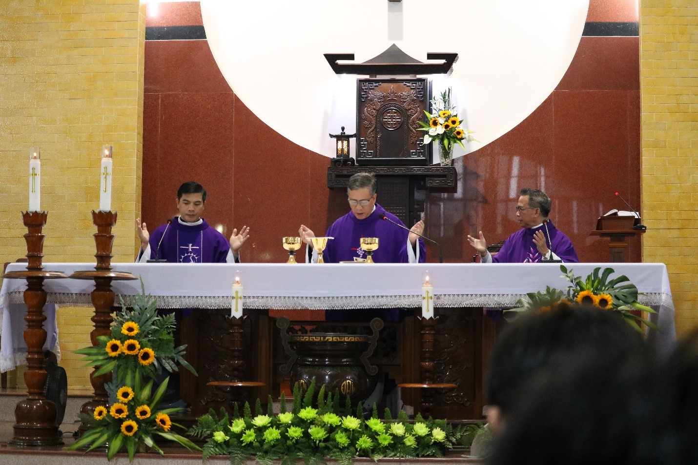 Mở đầu Thánh lễ, Cha Giám đốc Gioan Baotixita Ngô Đình Tiến gợi lên cho cộng đoàn gương sáng và những đóng góp không ngừng nghỉ của Đức cha Phêrô trong việc hình thành, phát triển Đại Chủng viện và cũng như trong công cuộc đào tạo hàng linh mục của Chúa.