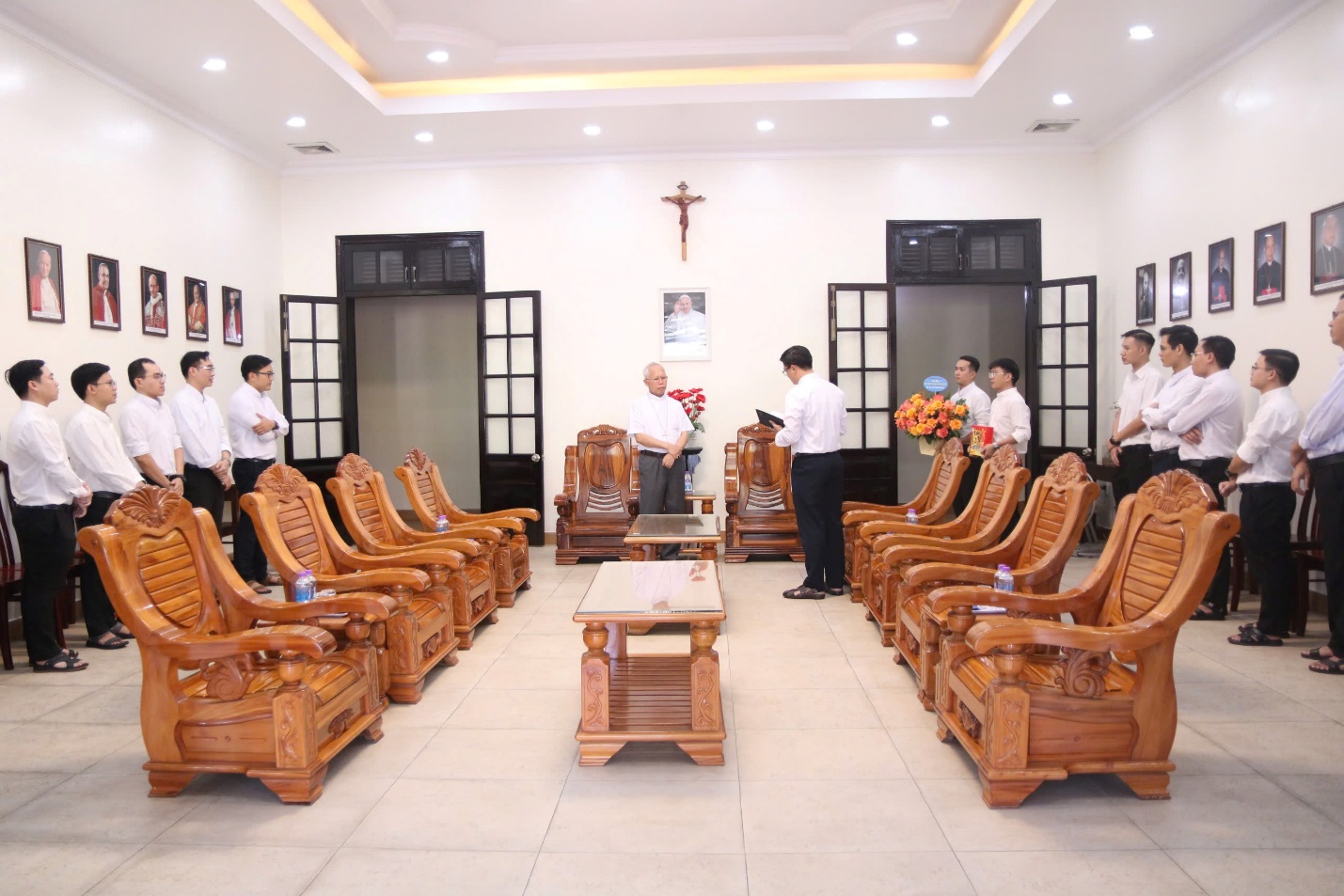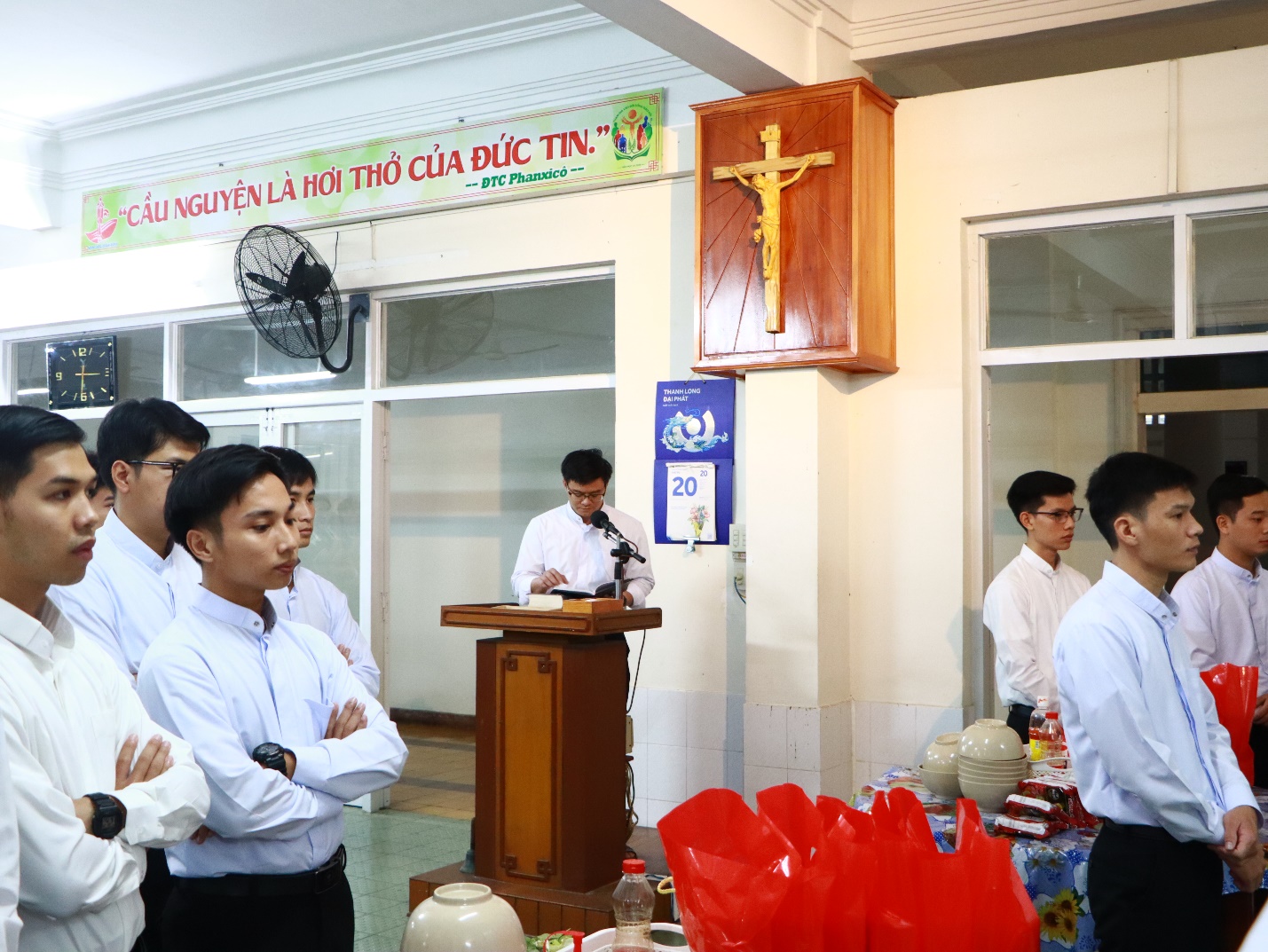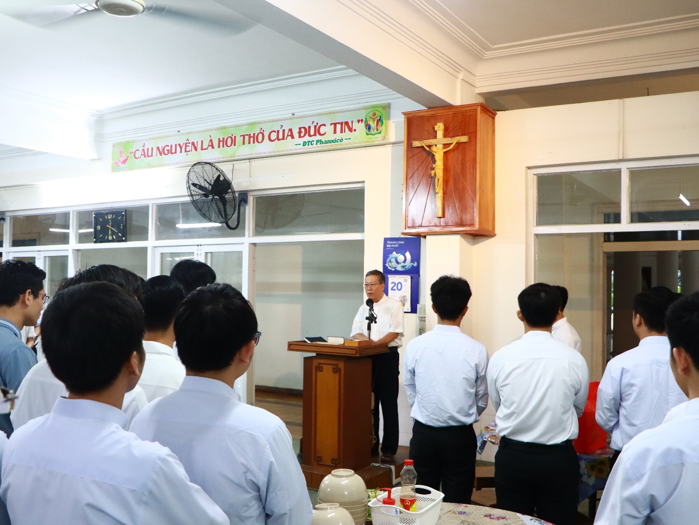 Vào sáng ngày 20/11/2024, các chủng sinh hướng về quý cha trong Ban Giám đốc và quý cha giáo sư để bày tỏ lòng tri ân và chúc mừng nhân ngày Nhà giáo Việt Nam. Người ta thường ví thầy cô như người lái đò, đưa học trò sang sông tri thức. Tuy nhiên, đối với các chủng sinh, quý cha không chỉ là người lái đò, mà còn là ngọn nến cháy sáng, âm thầm tiêu hao theo năm tháng, để soi tỏ và truyền lại ngọn lửa yêu mến, dẫn dắt các chủng sinh trên con đường tìm kiếm chân lý và thánh ý Chúa.