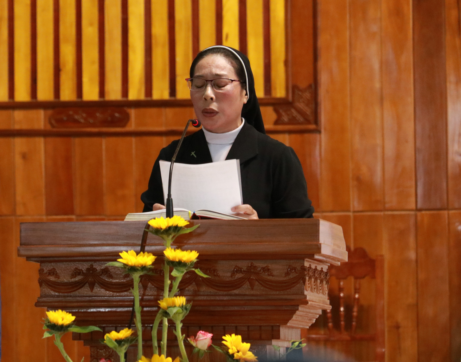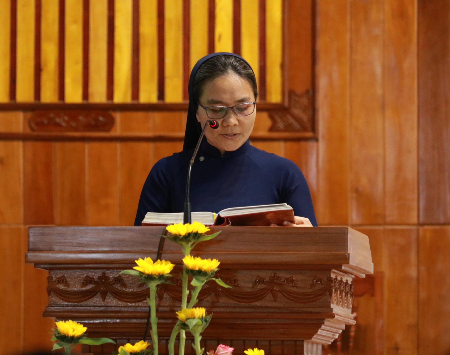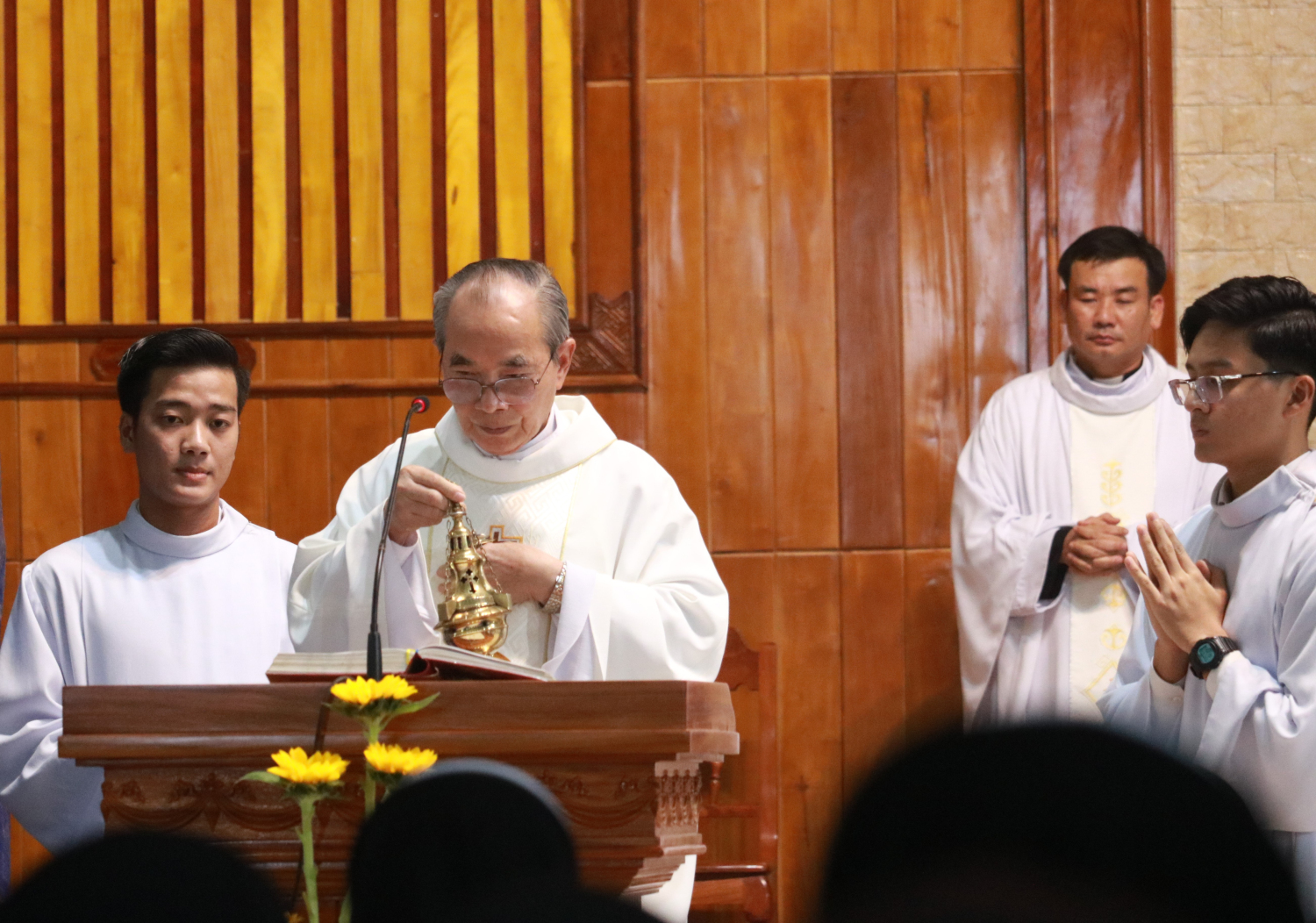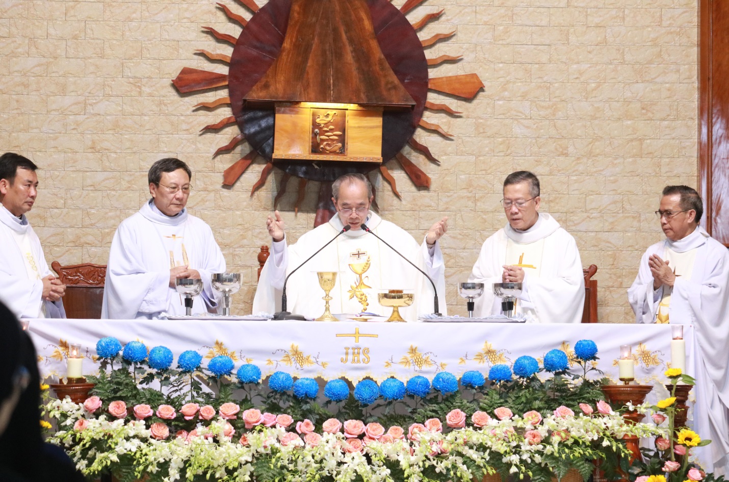 Sau đó, lúc 16g, Cha Tổng Đại diện Gioakim Phạm Công Văn chủ tế thánh lễ Chúa hiển linh, vì Đức cha Giuse Huỳnh Văn Sỹ bận công việc ngoài giáo phận. Đồng tế với cha Tổng Đại diện là Cha Giám đốc và quý cha giáo sư Đại Chủng viện Sao Biển, cùng quý cha Chủng viện Lâm Bích cũng như quý cha từ các hội dòng đang phục vụ trong Giáo phận.