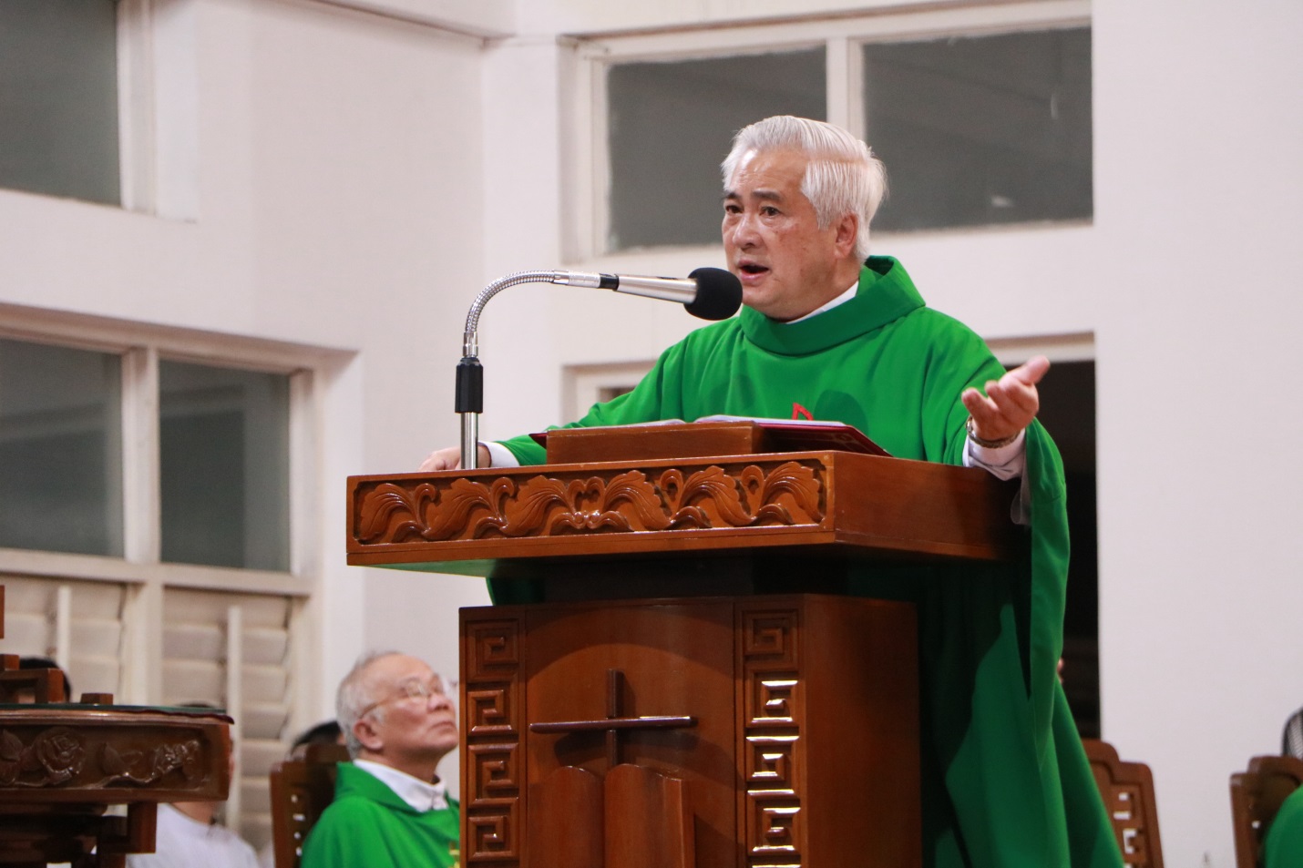 Trong những ngày thuyết trình tại Đại Chủng viện Sao Biển, cha Phêrô Trần Mạnh Hùng cũng chủ tế và chia sẻ cảm nghiệm đức tin của cha trong Thánh lễ Tiếng Anh theo chương trình hằng tháng của Chủng viện.
