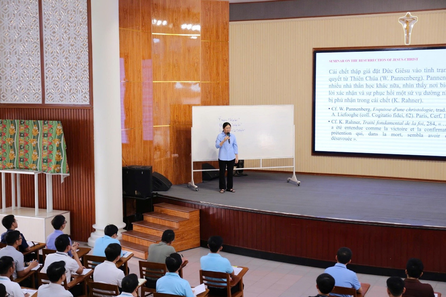 Sáng thứ Bảy, lúc 7h30 ngày 15 tháng 11 năm 2025, Đại Chủng viện Sao Biển Nha Trang tổ chức Hội thảo chuyên đề Thần học với chủ đề: Tính lịch sử của biến cố Phục Sinh. Chuyên đề do soeur Anna Trần Thị Nguyệt, Giáo sư Tín lý của Học viện Công Giáo Việt Nam, thuộc Hội dòng Mến Thánh Giá Xuân Lộc, trình bày.