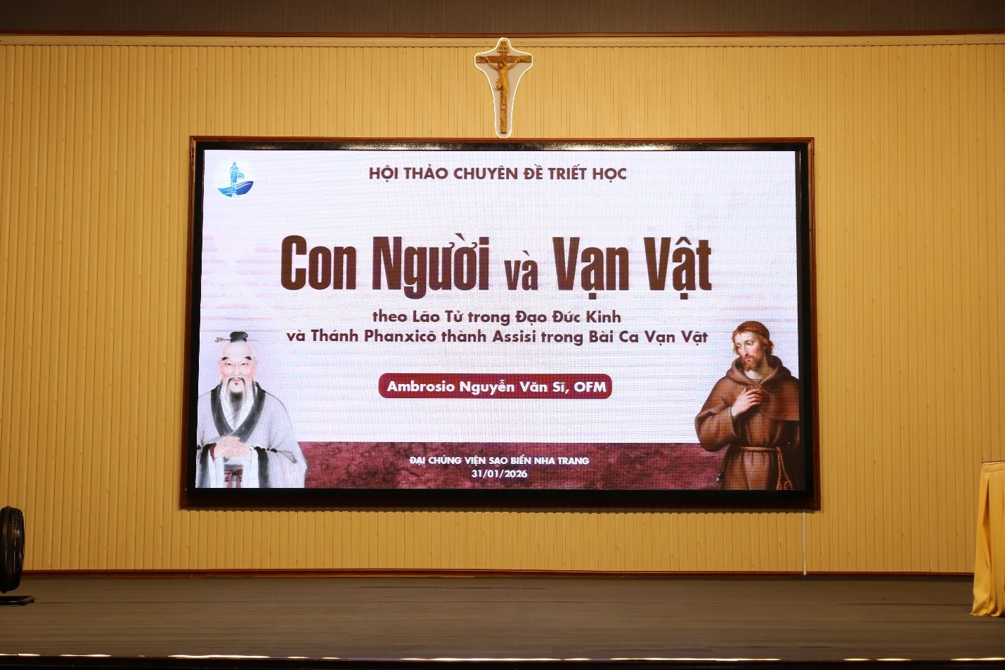 Sáng thứ Bảy, lúc 7h30 ngày 31/01/2026, tại Hội trường Đại Chủng viện Sao Biển đã diễn ra buổi hội thảo chuyên đề: “Con người và vạn vật theo Lão Tử trong Đạo Đức Kinh và thánh Phanxicô Assisi trong Bài ca Vạn vật” do Cha Ambrôsiô Nguyễn Văn Sĩ, OFM, trình bày.