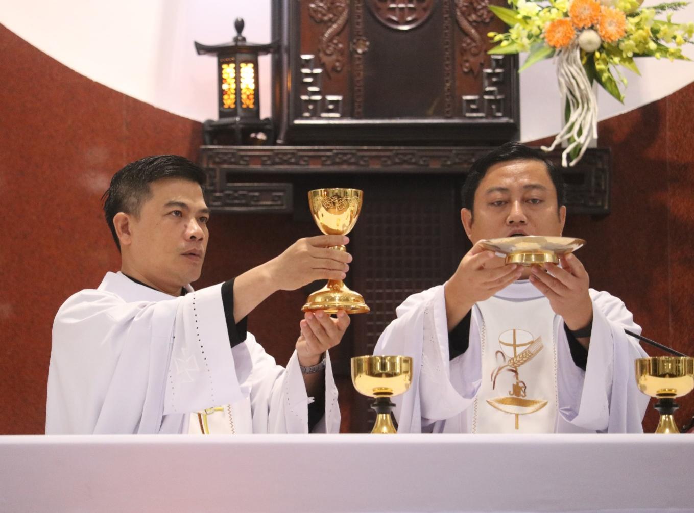Trong lời dẫn lễ, cha Gioan Baotixita, bày tỏ, trước hết, dâng lời tạ ơn Thiên Chúa vì biết bao ơn lành và muôn vàn hồng ân mà Thiên Chúa trao ban cho hai cha, đặc biệt là hồng ân thánh chức linh mục cao quý. Thiên Chúa đã không ngừng gìn giữ để hai cha có thể vững bước, vượt qua bao khó khăn trên quãng đường thi hành sứ vụ. Đồng thời, cha cũng không quên ghi ân gia đình Đại chủng viện Sao Biển Nha Trang, cùng với những vị ân sư, các vị ân thân nhân đã nâng đỡ hai cha trên con đường ơn gọi và mục vụ của mình.