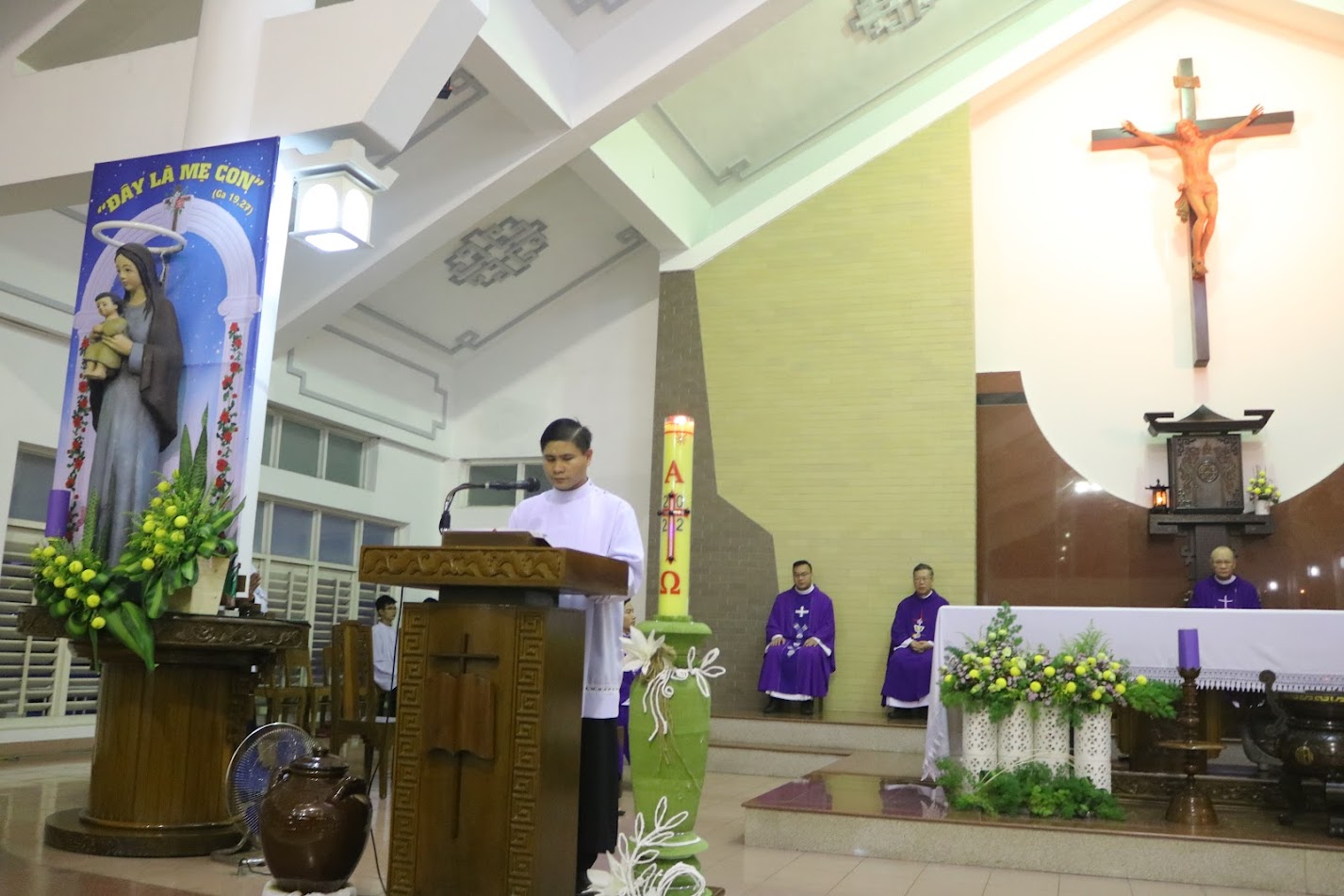 Cha Phêrô Nguyễn Xuân Phong, Phó Giám đốc – Giám học phân khoa Triết học, đã chủ sự Thánh lễ. Cùng đồng tế với ngài có quý Cha trong Ban Giám đốc, quý Cha giáo sư, cùng sự tham dự tích cực của quý thầy, quý soeurs và cộng đoàn.