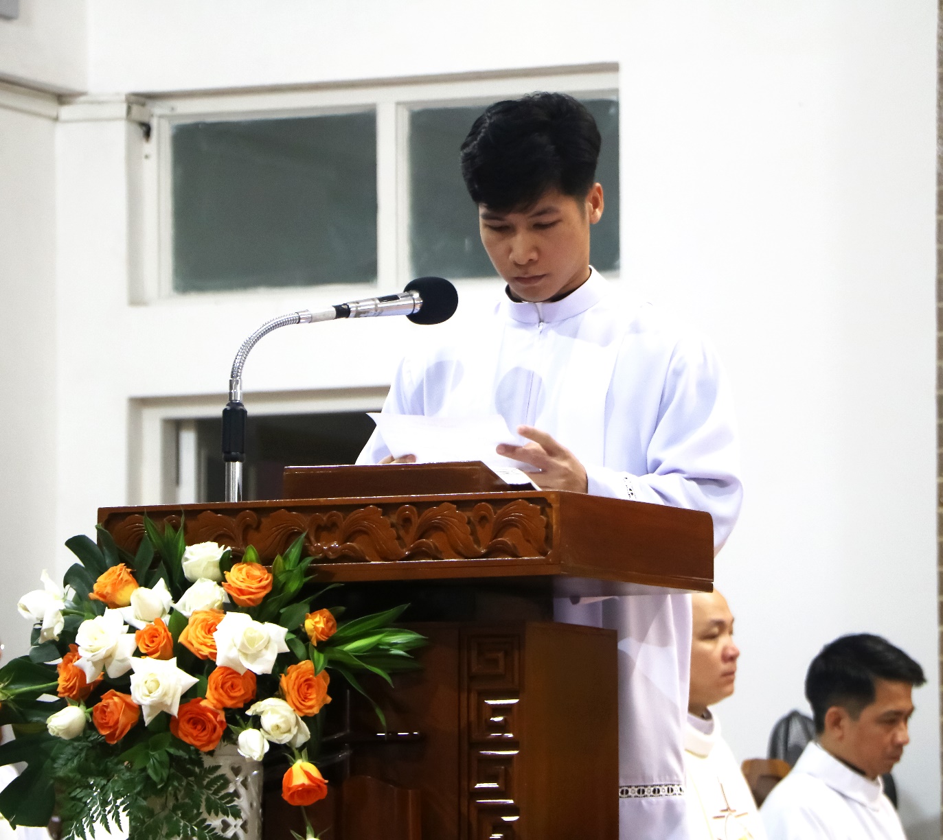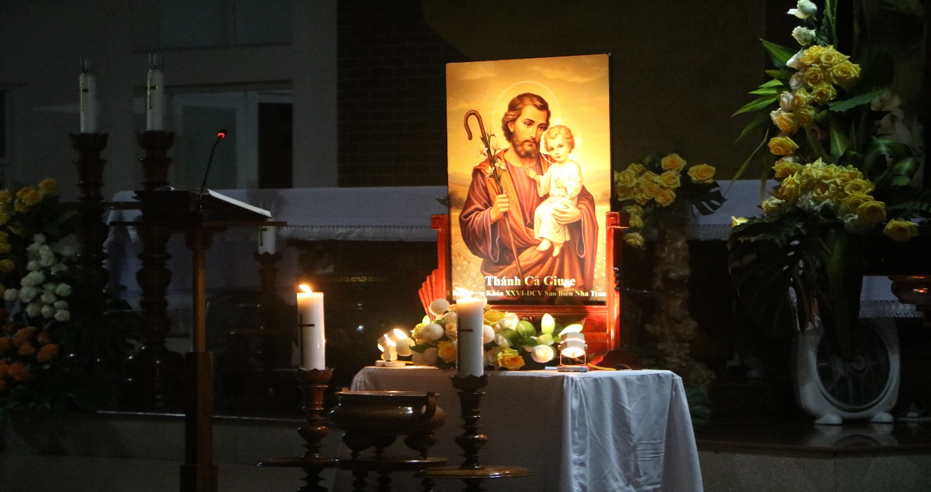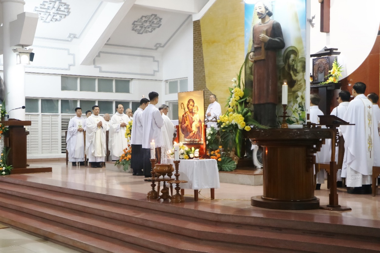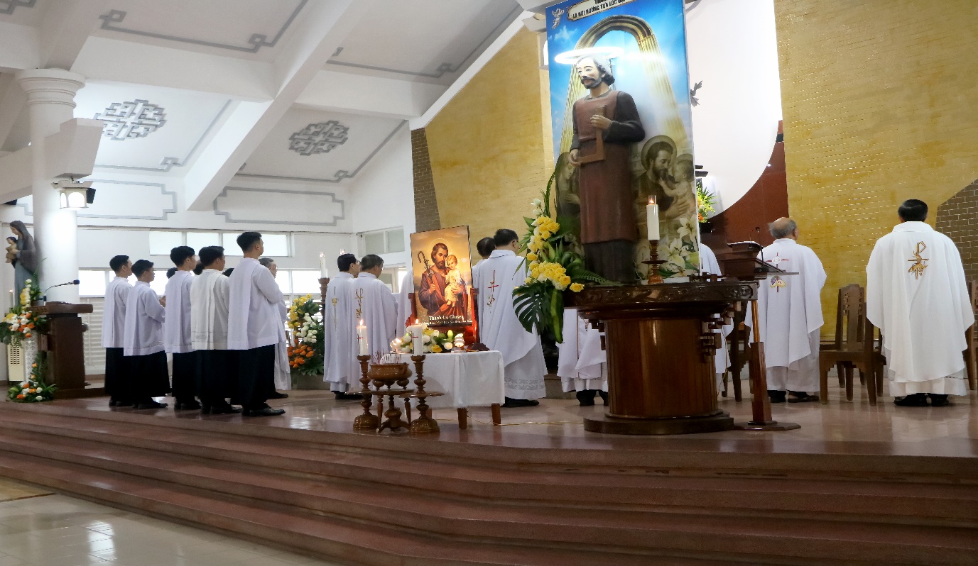 Mở đầu Thánh lễ, Cha linh hướng Đại Chủng viện gợi lại đôi nét về cuộc đời và gương sáng của Thánh Cả Giuse. Ngài là một người Cha thánh thiện, công chính, luôn tìm kiếm và vâng theo thánh ý Thiên Chúa trước mọi biến cố. Qua đó, Cha linh hướng Giuse mời gọi cộng đoàn noi gương thánh nhân, biết sống tinh thần khiêm nhường, tín thác và vâng theo thánh ý Thiên Chúa trong niềm vui và tự do.