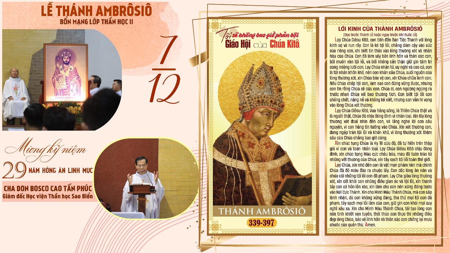 LỄ THÁNH AMBRÔSIÔ - BỔN MẠNG LỚP THẦN HỌC II KỶ NIỆM 29 NĂM HỒNG ÂN LINH MỤC CHA GIOAN BOSCO CAO TẤN PHÚC