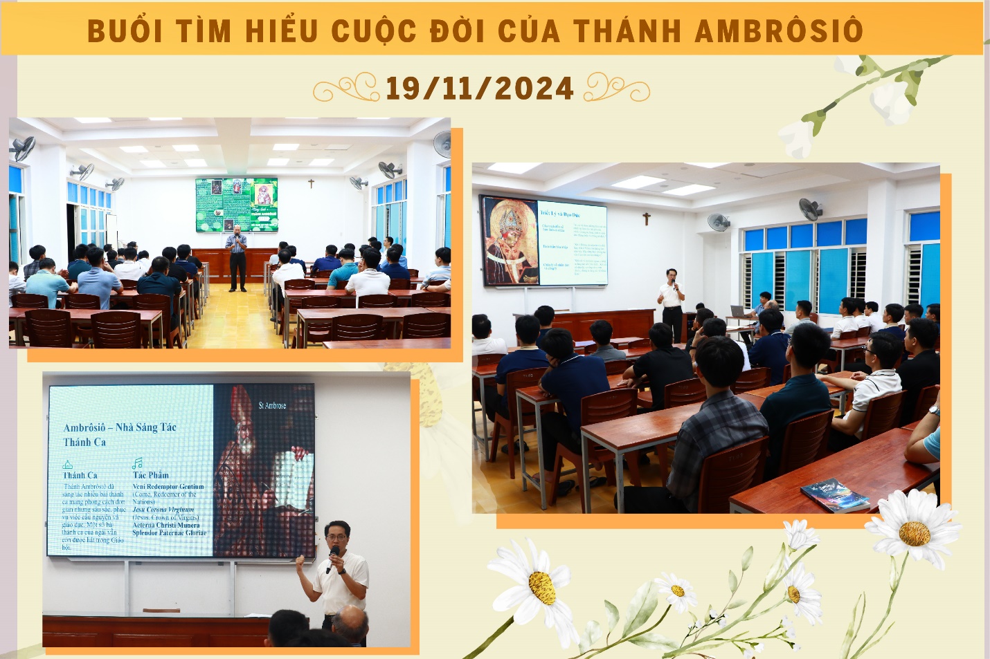 Để cho Thánh lễ mừng kính thánh Ambrôsiô thêm ý nghĩa và sốt mến, quý thầy lớp Thần học II đã có buổi tìm hiểu về cuộc đời của thánh nhân. Ngài là vị thánh đặc biệt của Giáo hội Công Giáo khi được dân chúng chọn làm Giám mục cách lạ thường. Tuy nhiên, điểm nổi bật không nằm ở việc ngài được tôn làm Giám mục, mà nơi đời sống thánh thiện và tư tưởng thần học lỗi lạc của ngài. Thánh Ambrôsiô là Giáo phụ là tiến sĩ Hội Thánh.
