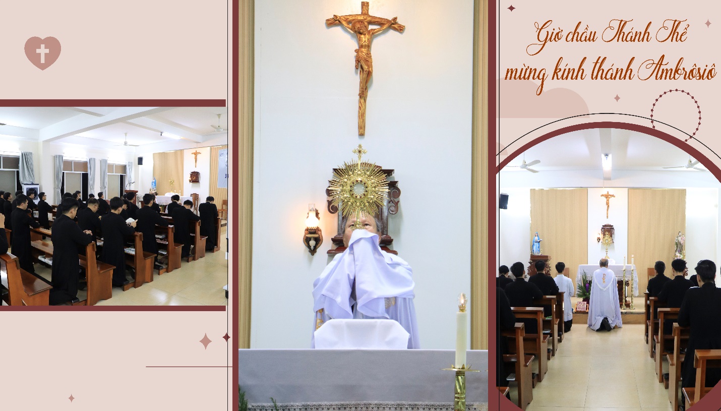 Bên cạnh đó, quý thầy cũng có một giờ chầu Thánh Thể để tôn vinh và tạ ơn Thiên Chúa vì Người đã ban cho Giáo hội một vị thánh lừng danh. Đồng thời, quý thầy cũng cầu nguyện cho nhau thêm trung tín và hăng say trên hành trình tu học, theo gương vị thánh bổn mạng của lớp.