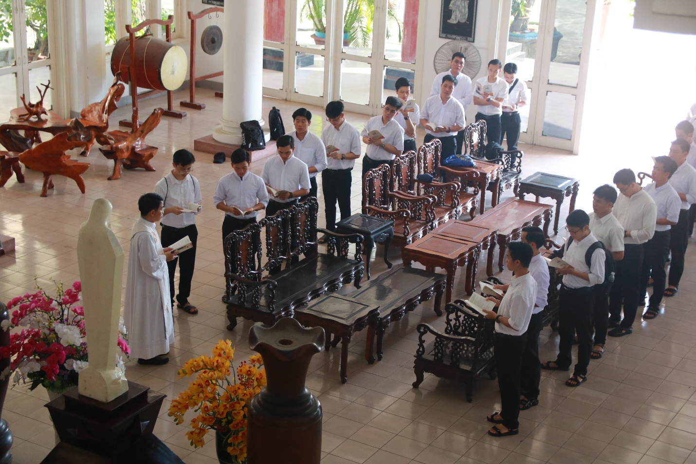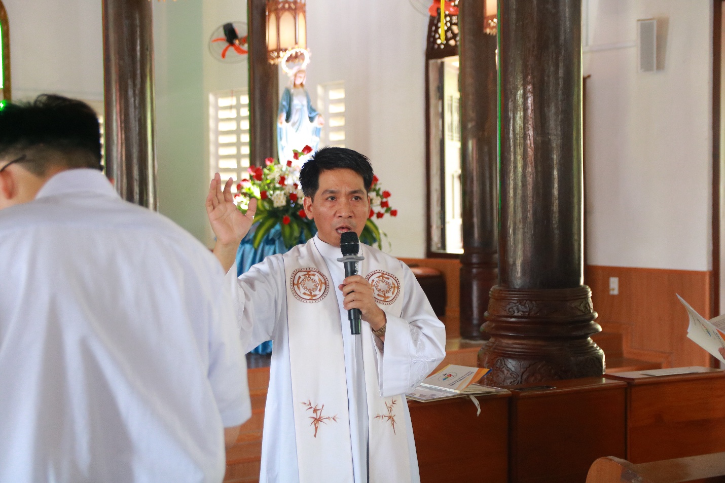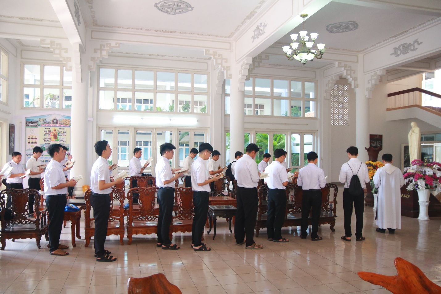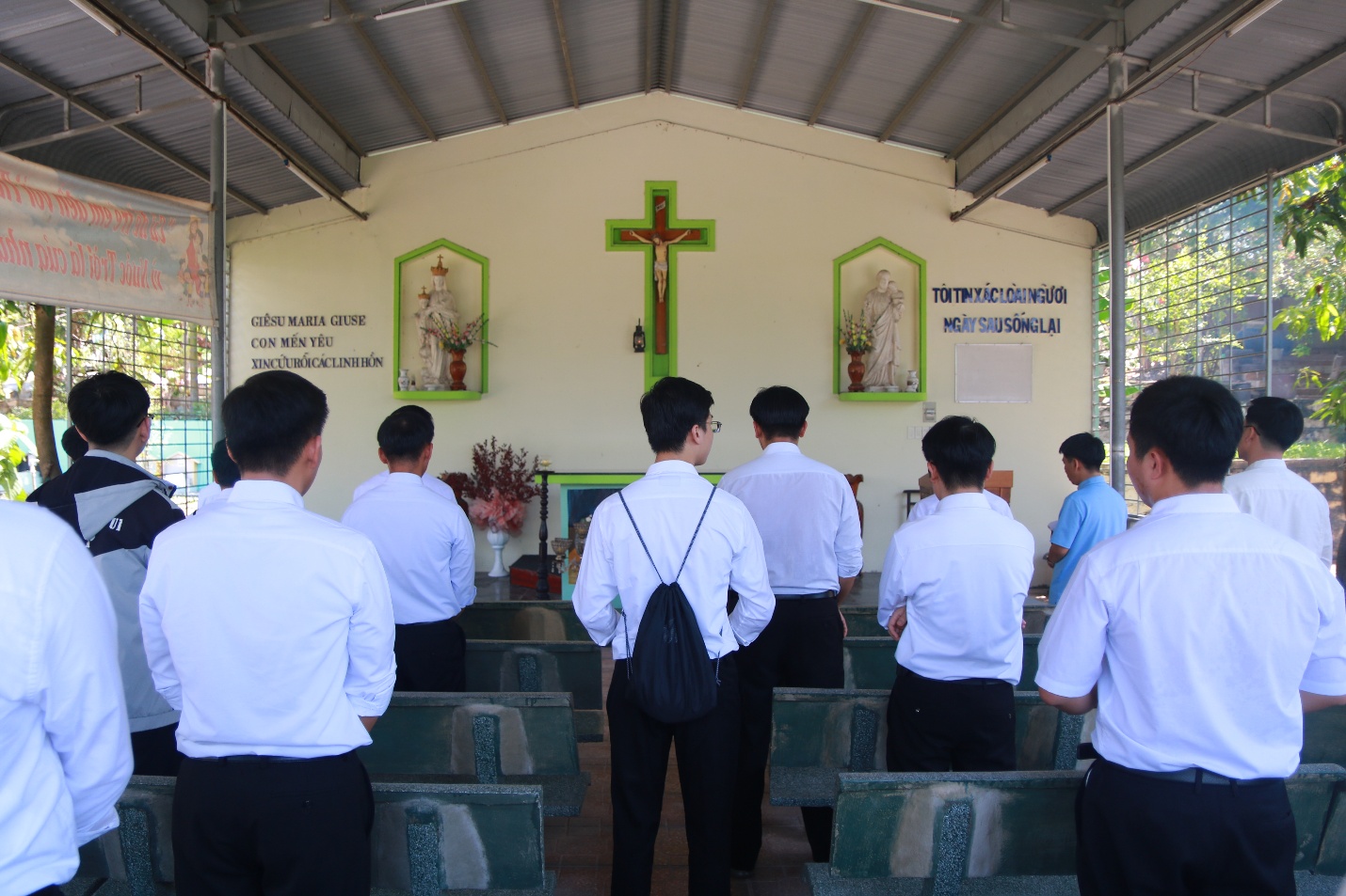 Vào lúc 7h45 cùng ngày, trước Mẹ Sao Biển tại Phòng Khánh Tiết Đại Chủng Viện, Cha đồng hành và quý Thầy cử hành Nghi thức chúc lành cho đoàn hành hương lúc bắt đầu lên đường.