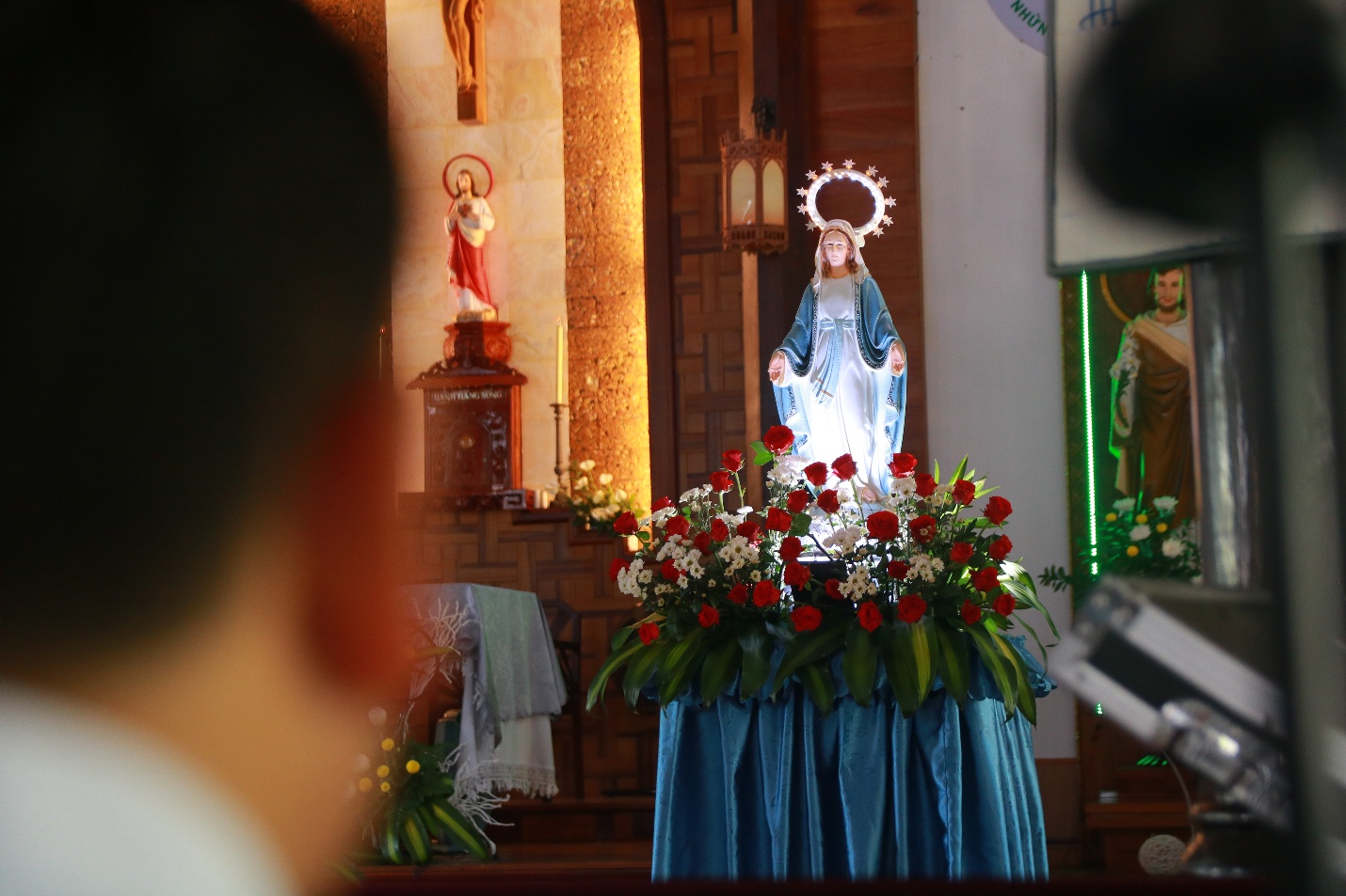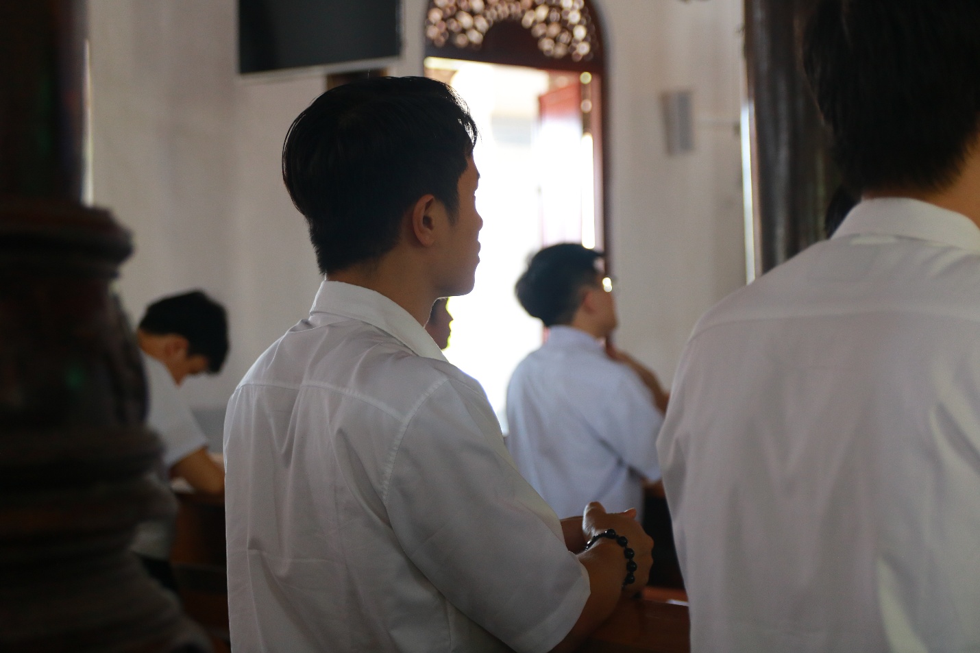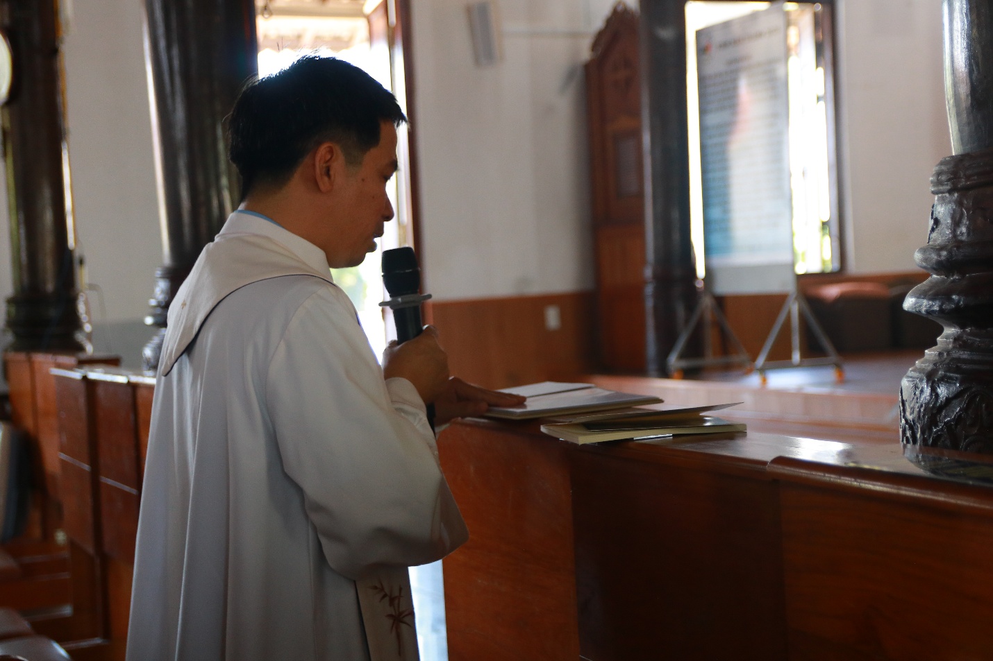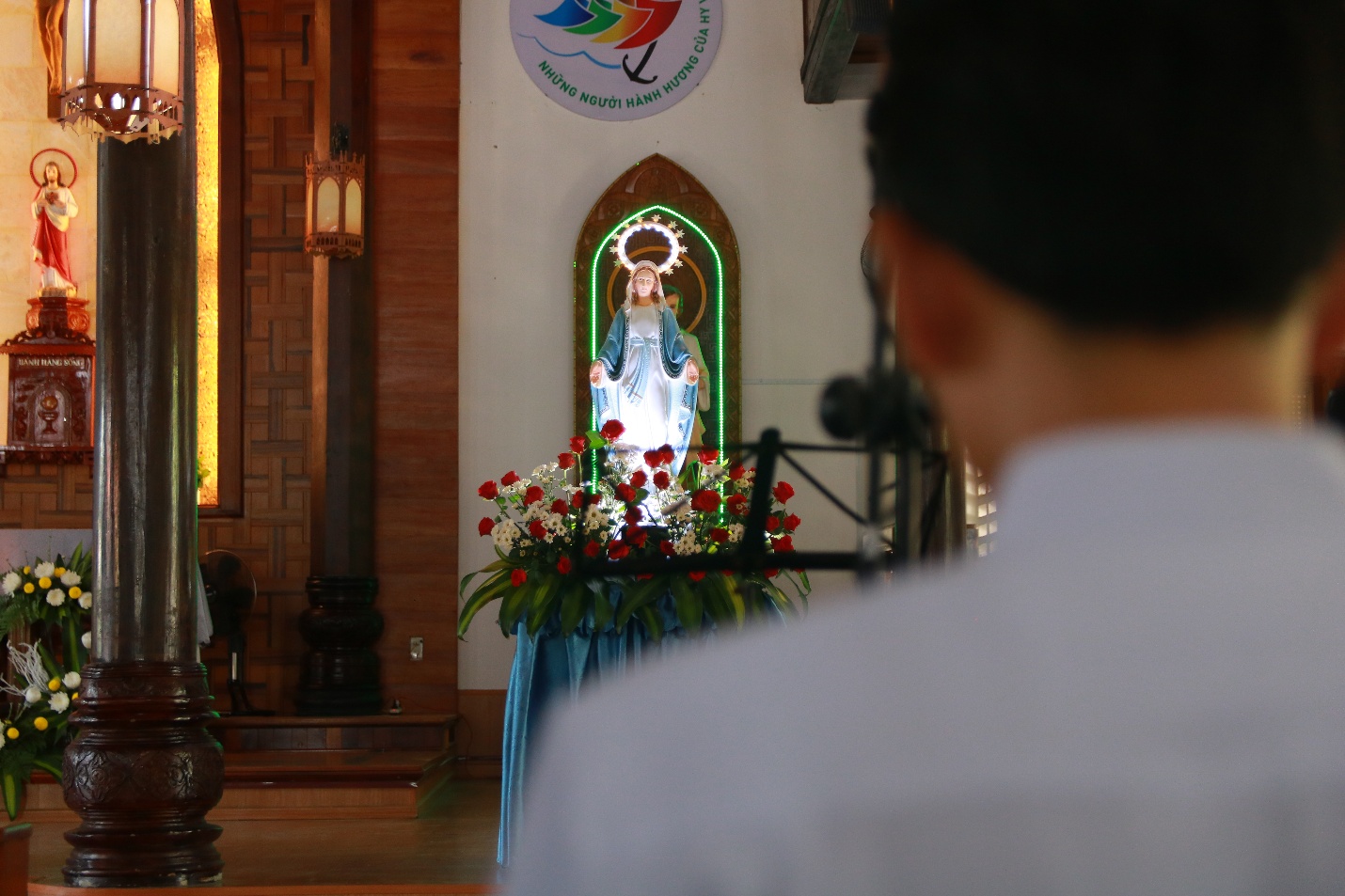 Vào lúc 7h45 cùng ngày, trước Mẹ Sao Biển tại Phòng Khánh Tiết Đại Chủng Viện, Cha đồng hành và quý Thầy cử hành Nghi thức chúc lành cho đoàn hành hương lúc bắt đầu lên đường.