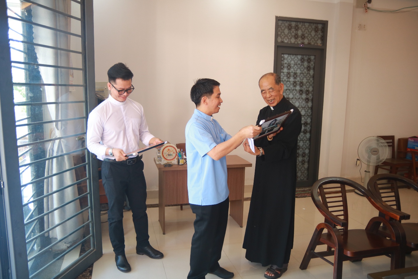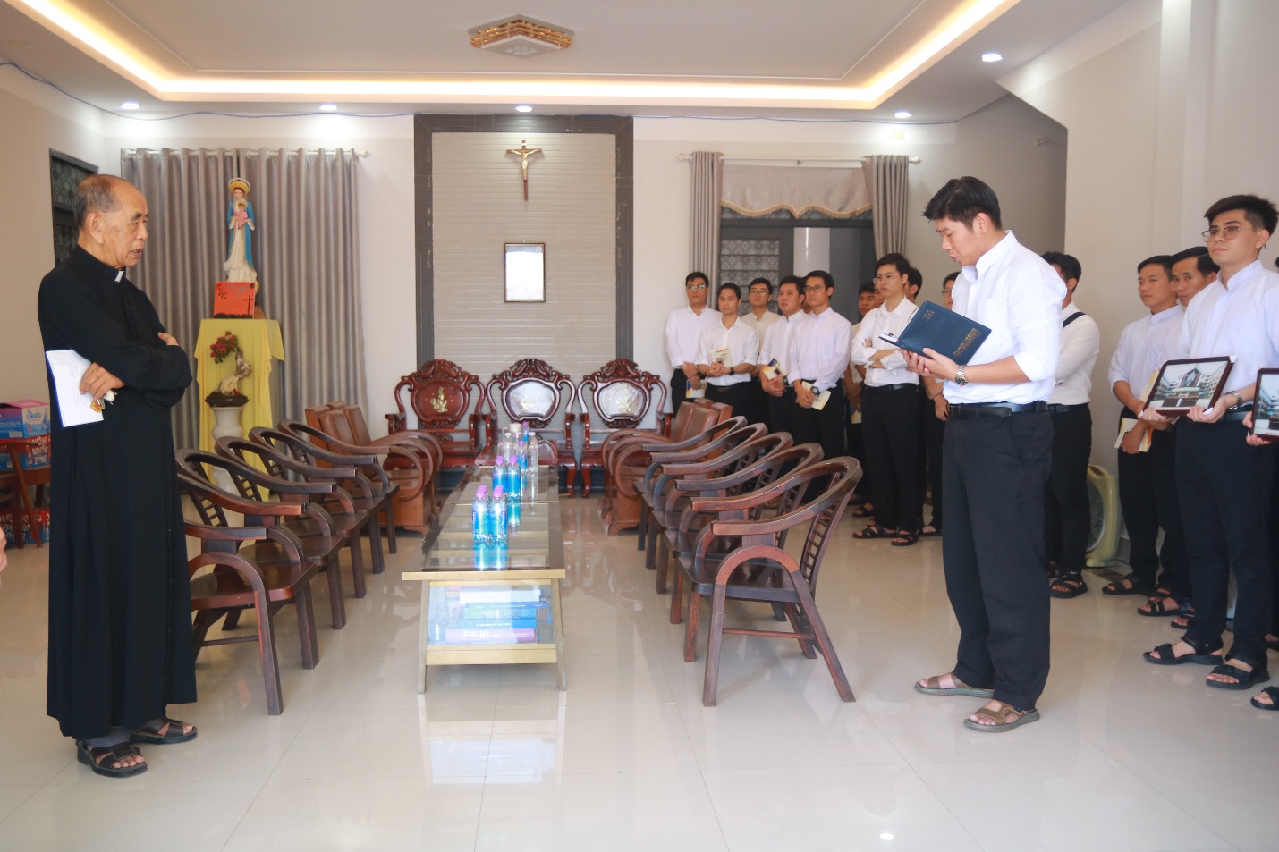Thầy Trưởng lớp, đại diện đoàn, có lời chào quý Cha và gửi tặng món quà kỷ niệm.