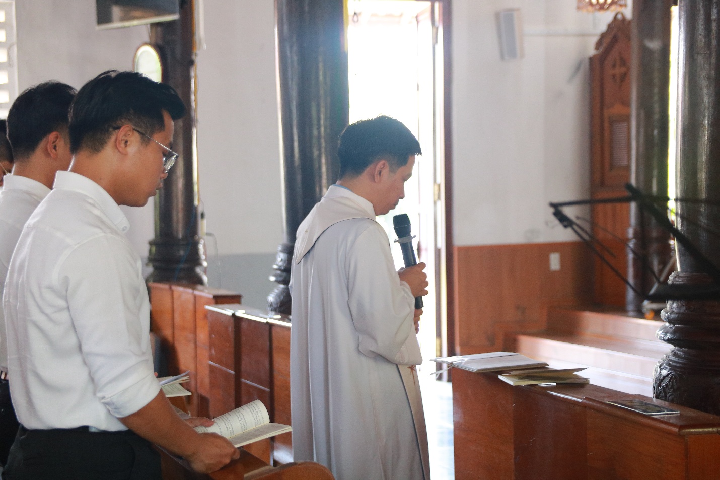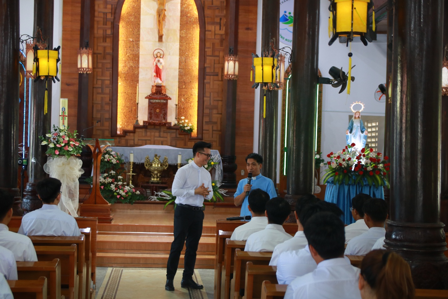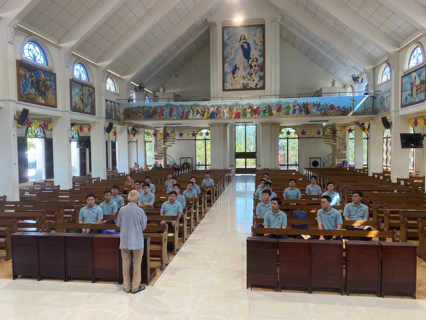 Cuối cùng, Cha đồng hành và quý Thầy đã cử hành Nghi thức kết thúc hành hương tại Thánh đường Giáo xứ trong niềm vui và hy vọng.