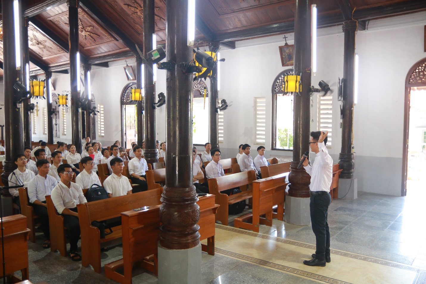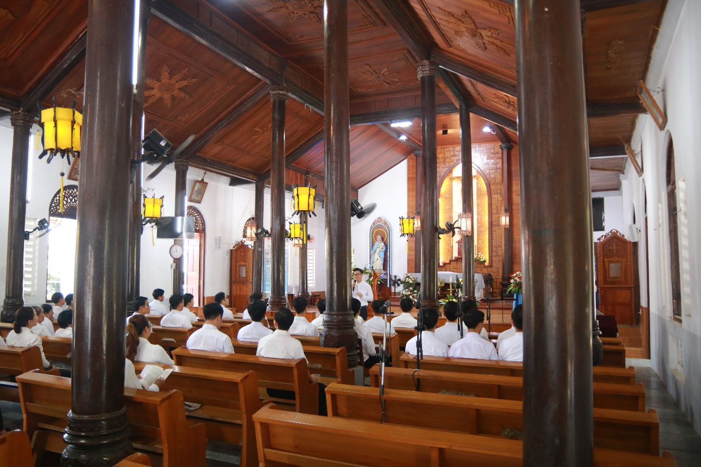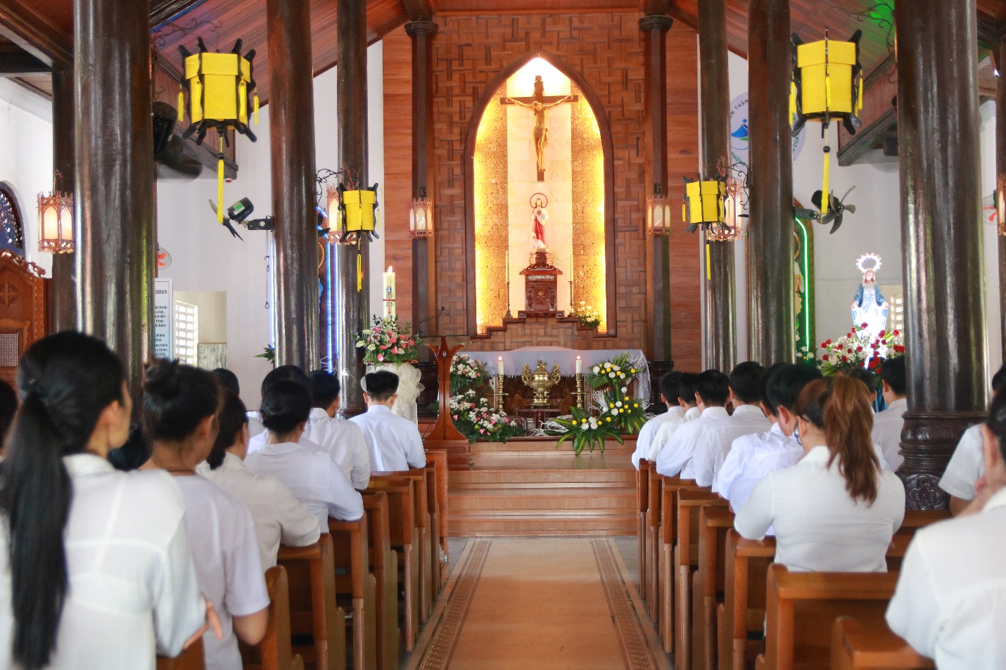 Cuối cùng, Cha đồng hành và quý Thầy đã cử hành Nghi thức kết thúc hành hương tại Thánh đường Giáo xứ trong niềm vui và hy vọng.