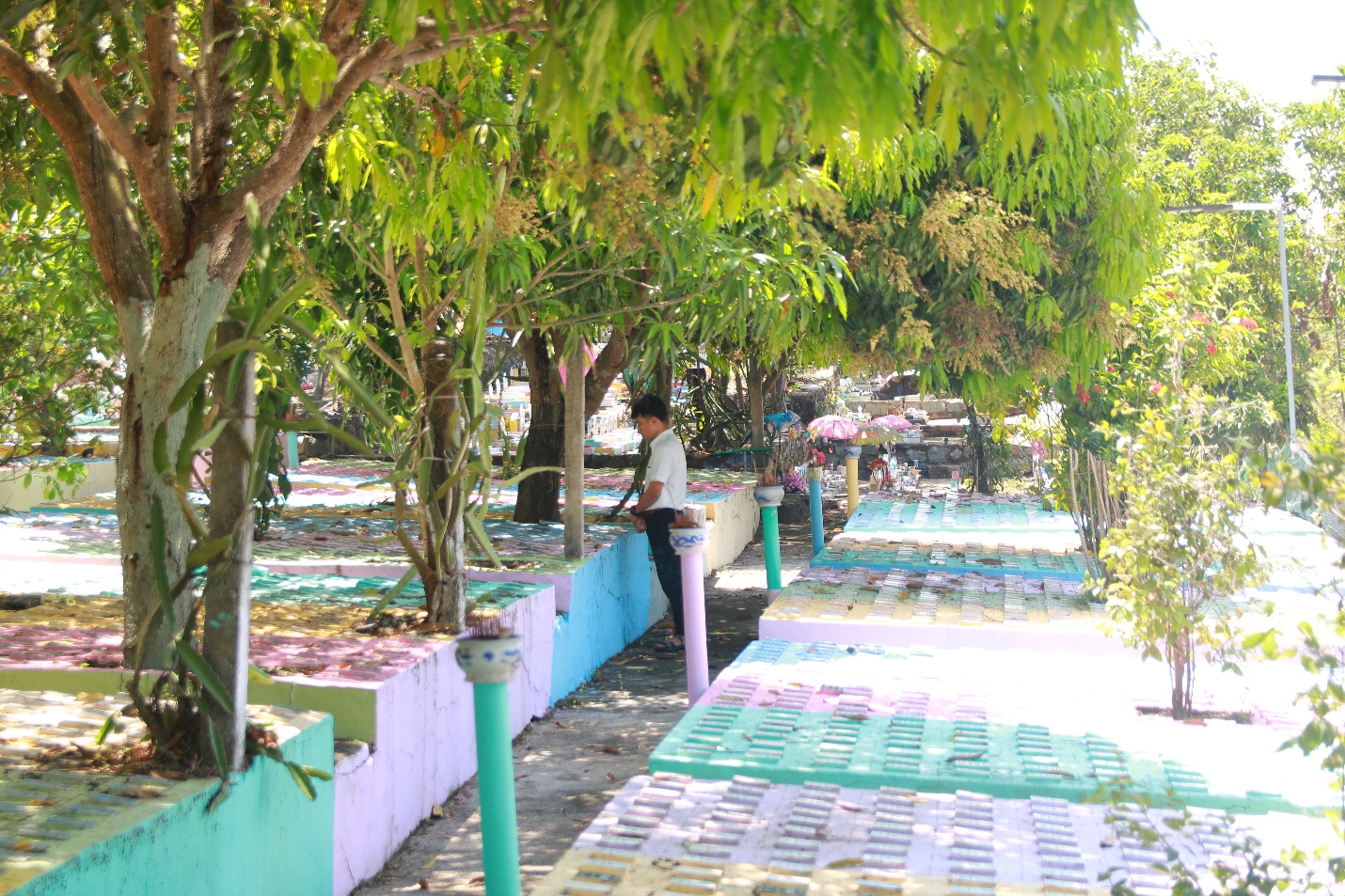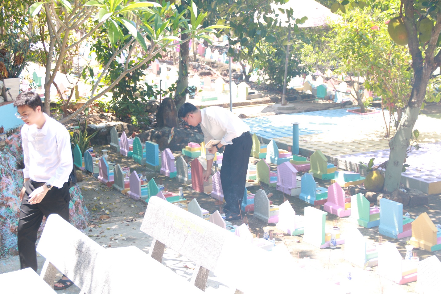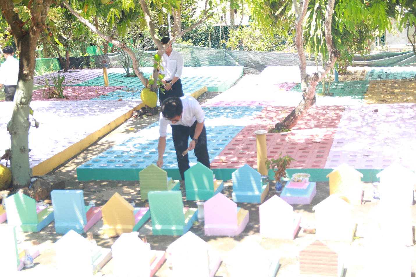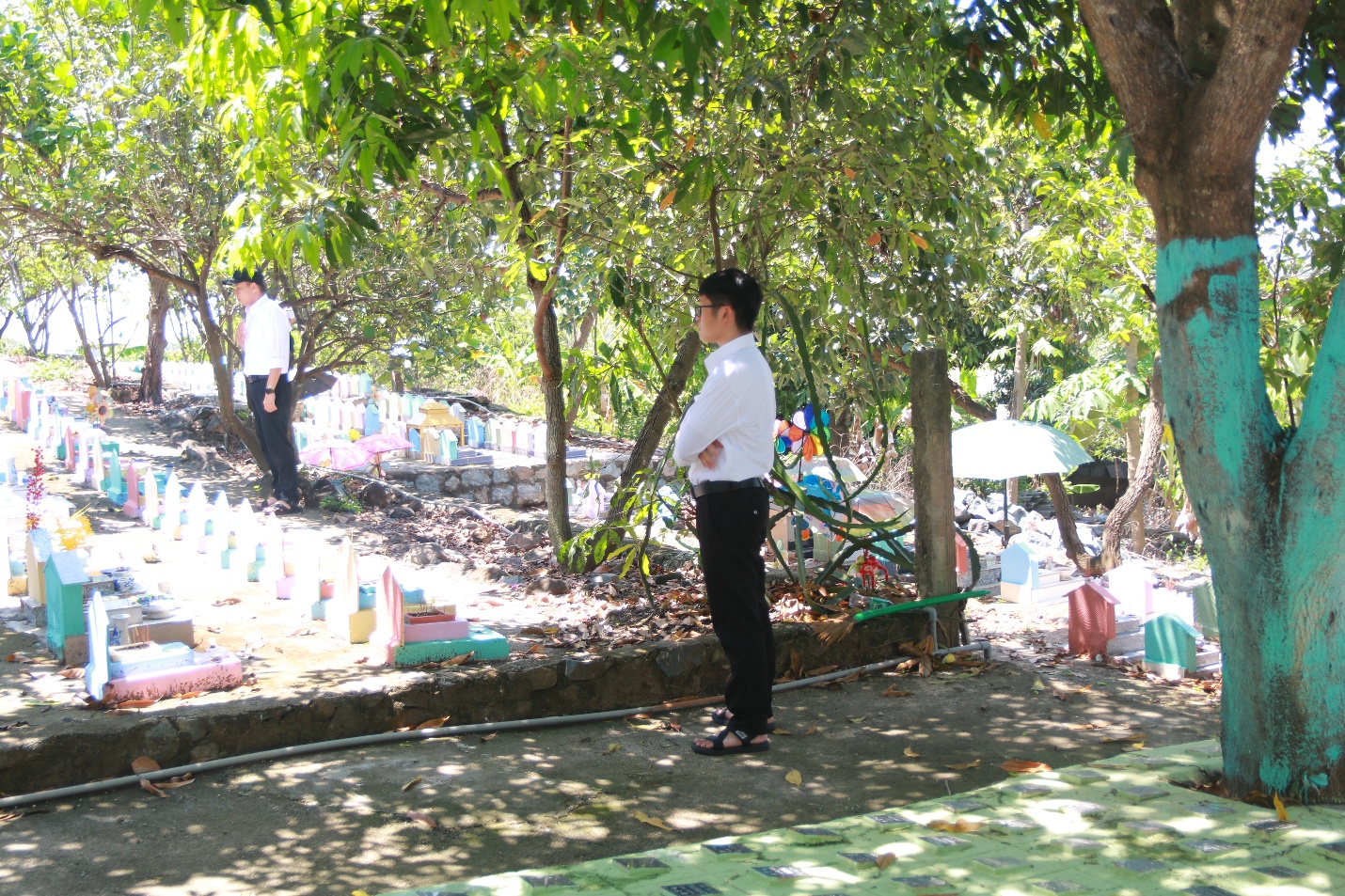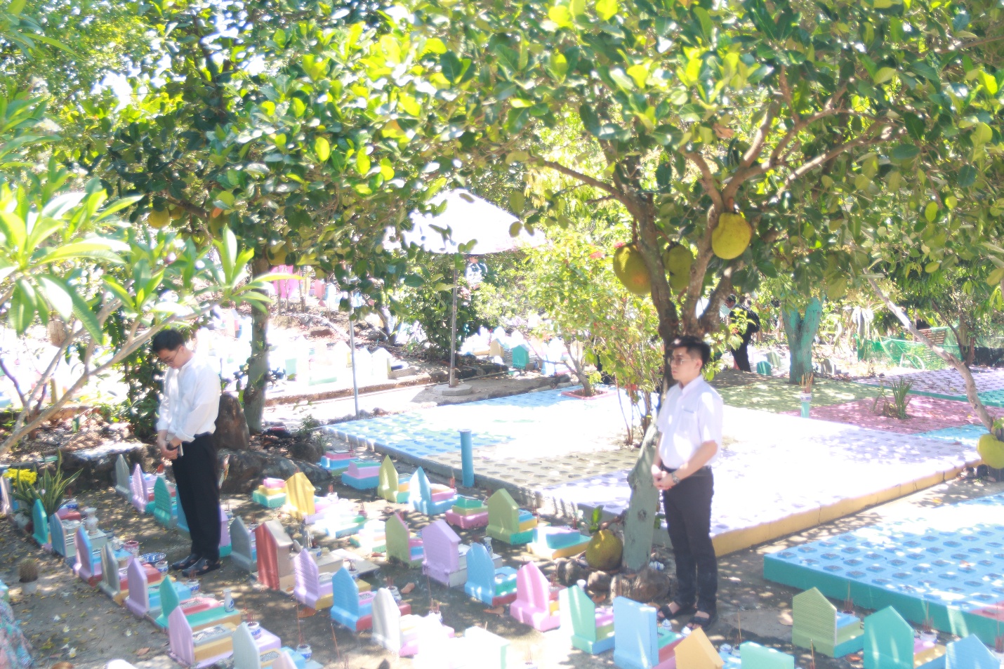 Tiếp tục chuyến hành trình, đoàn di chuyển đến Nghĩa trang thai nhi, Cha đồng hành và quý Thầy cùng nhau đọc kinh và cầu nguyện cho các linh hồn.
