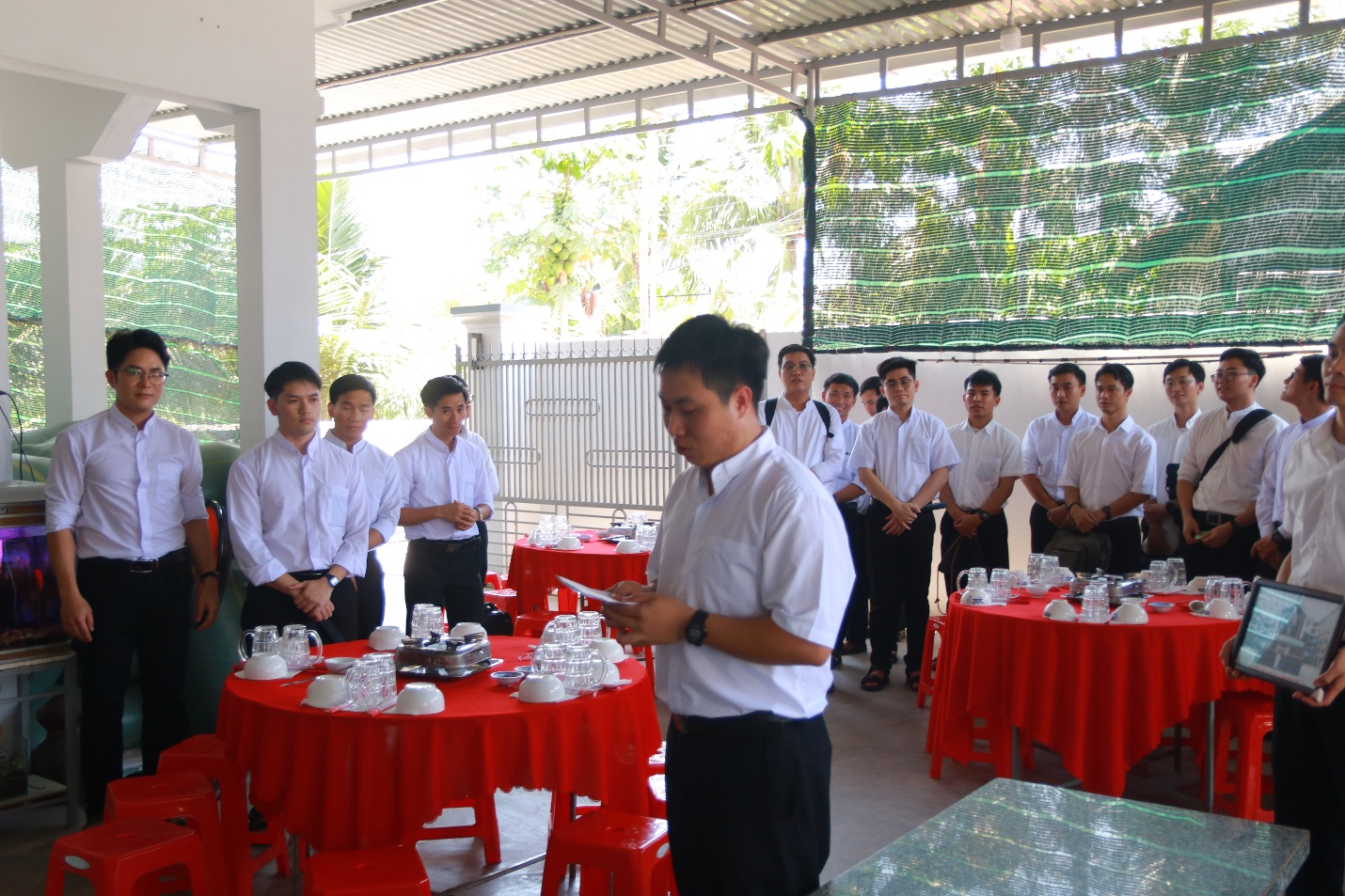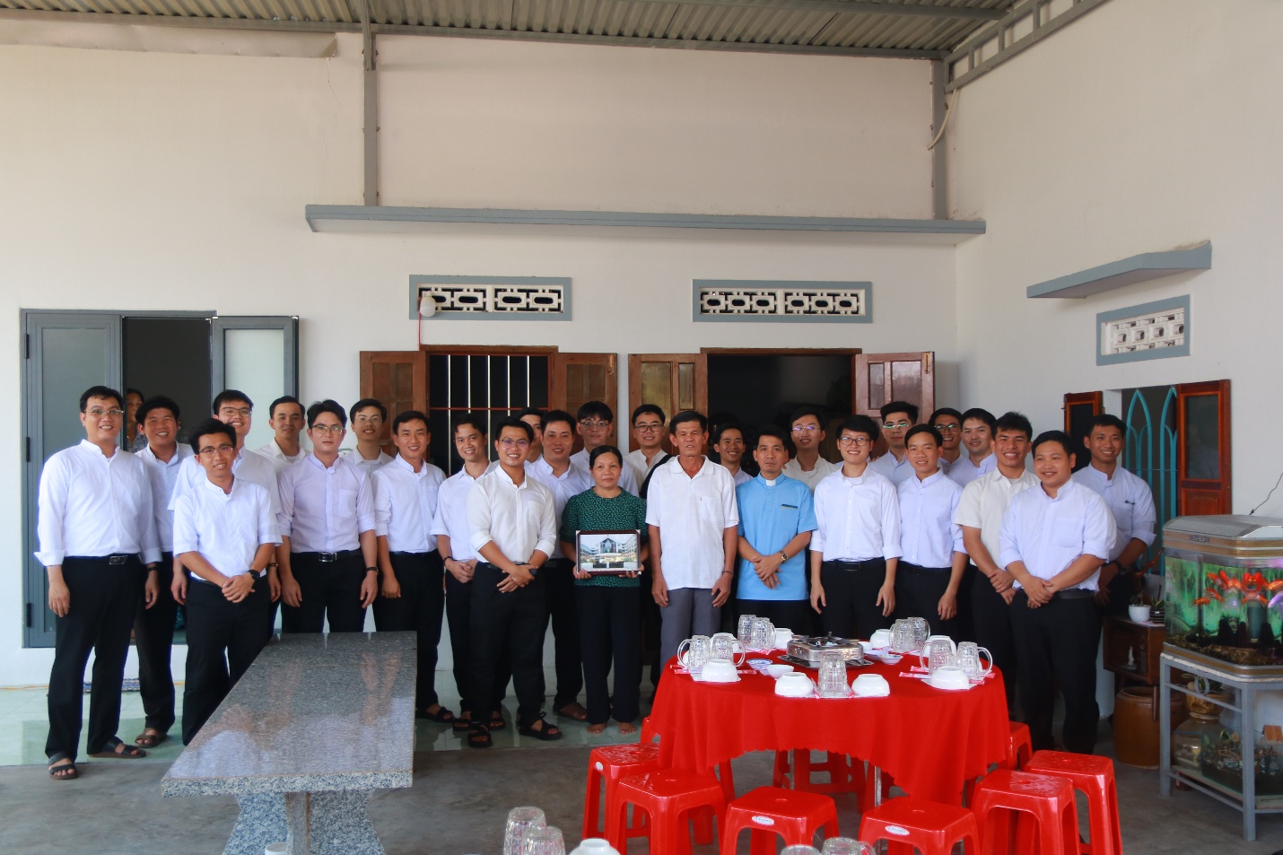 Đến Giáo xứ Hà Dừa, đoàn được Cha Quản xứ Giuse và Cha Phó xứ Phaolô đón tiếp trong sự nồng hậu và yêu thương.