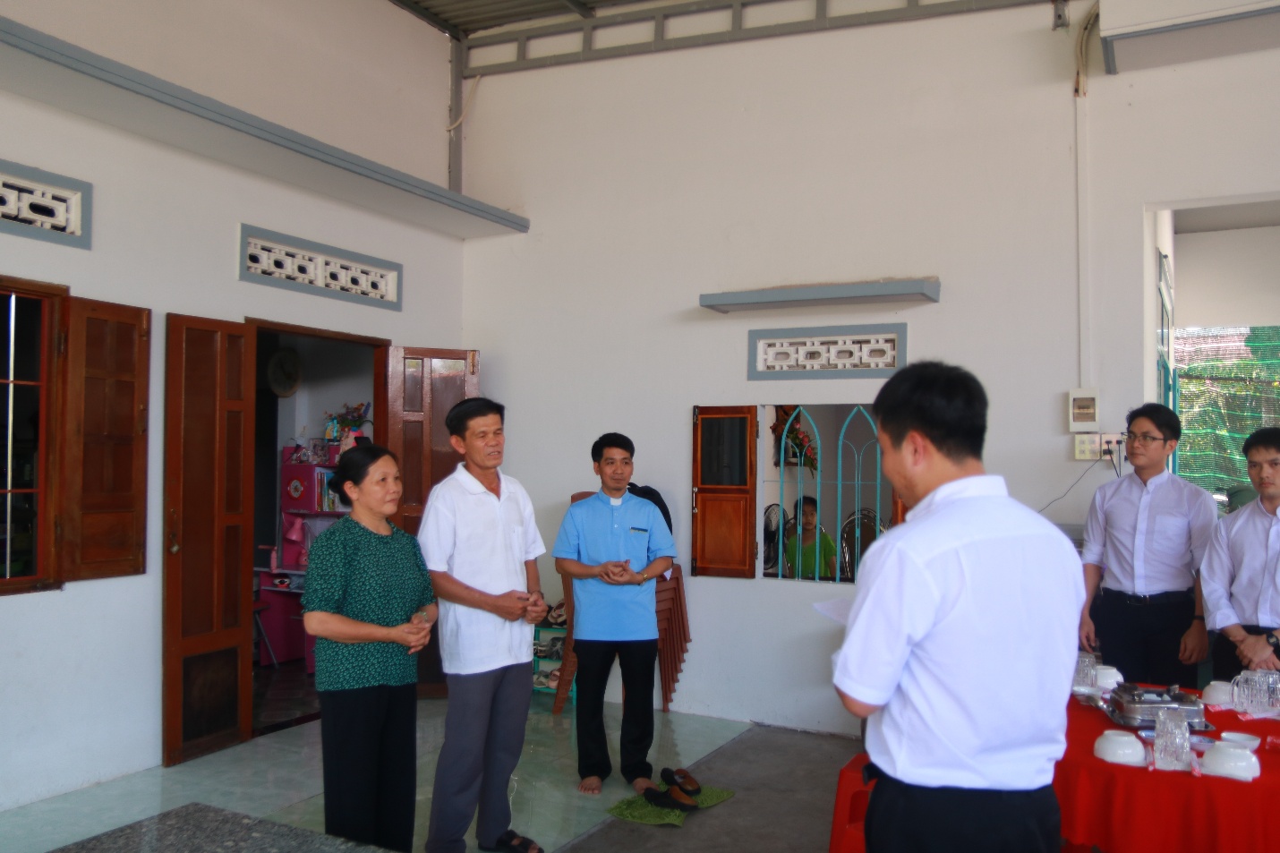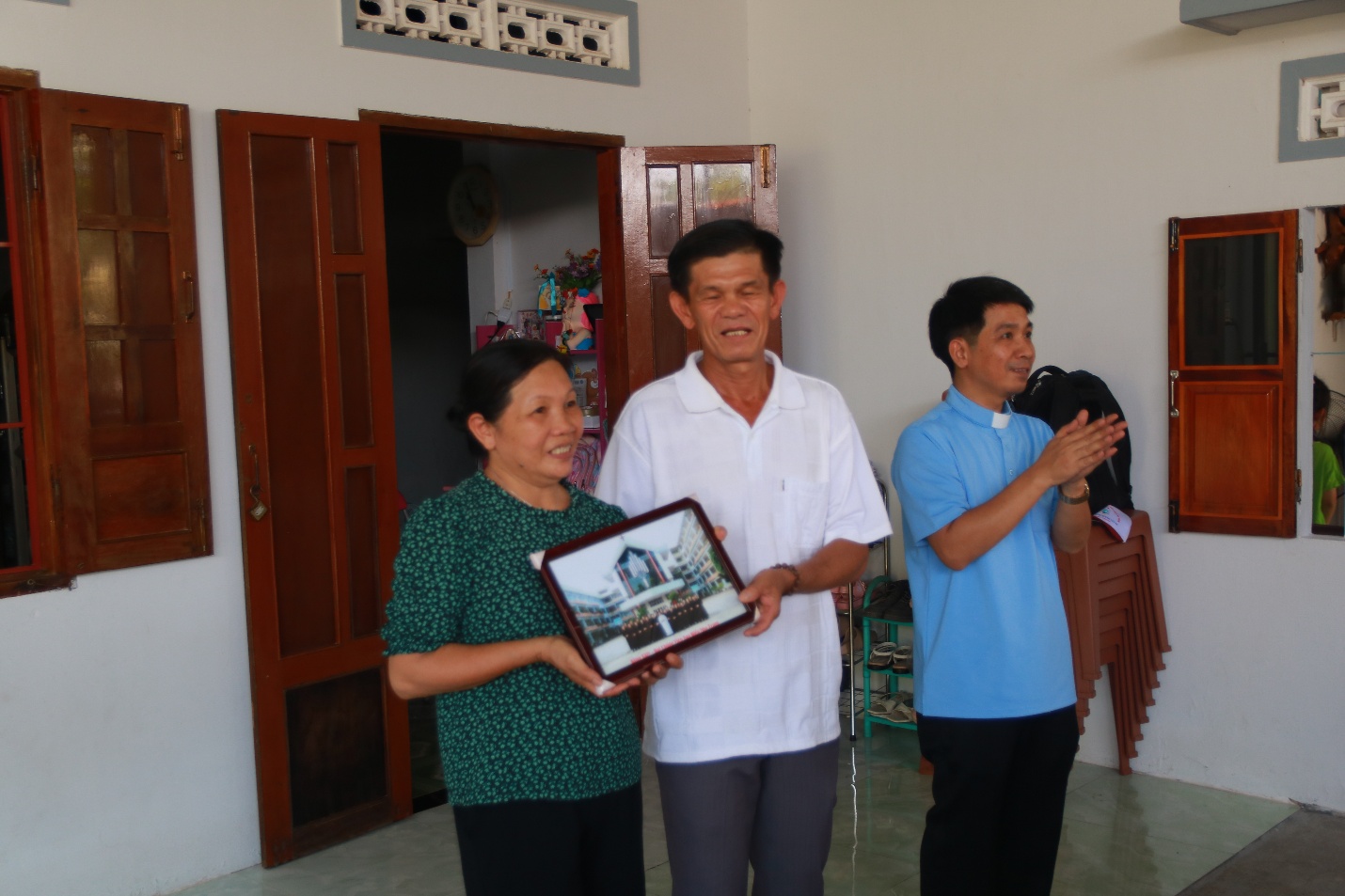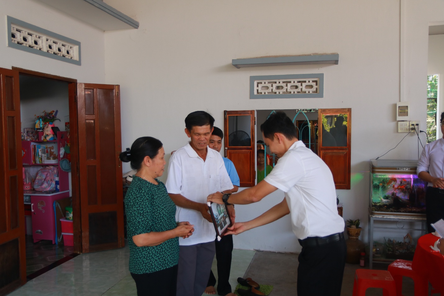 Đoàn cũng đến thăm nhà anh em và gửi tặng món quà kỷ niệm.