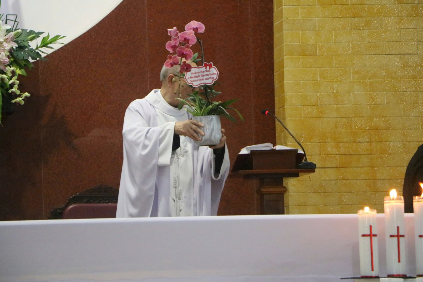 Trước khi Thánh lễ khép lại, Cha Giám đốc Gioan Baotixita thay mặt toàn thể Gia đình Đại Chủng viện gửi lời chúc mừng và tri ân đến Cha Phêrô vì những hy sinh, tận tụy và những đóng góp quý báu mà Cha đã dành cho Đại Chủng viện, cũng như cho công cuộc đào tạo linh mục của Giáo hội. Để bày tỏ tâm tình chúc mừng và biết ơn, Cha Giám đốc trao tặng Cha Phêrô đóa hoa tươi thắm như dấu chỉ của lòng quý mến và tri ân chân thành.