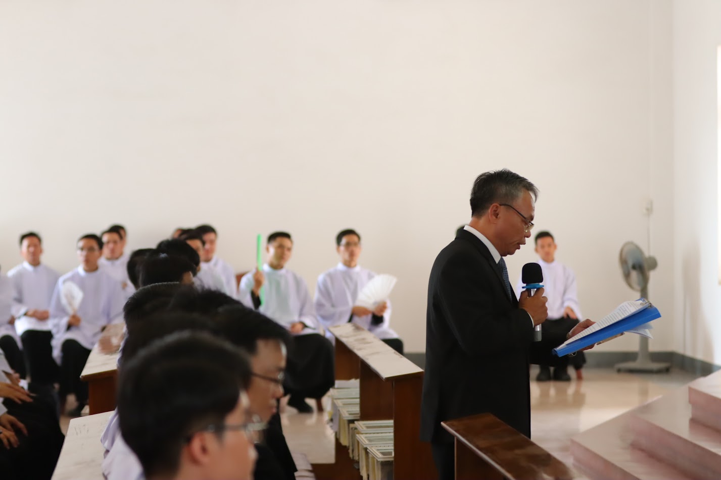 Tại phòng khánh tiết, quý phụ huynh được đón tiếp và giới thiệu sơ lược về chương trình đào tạo linh mục trong suốt hành trình 30 năm hình thành và phát triển của Đại Chủng viện Sao Biển