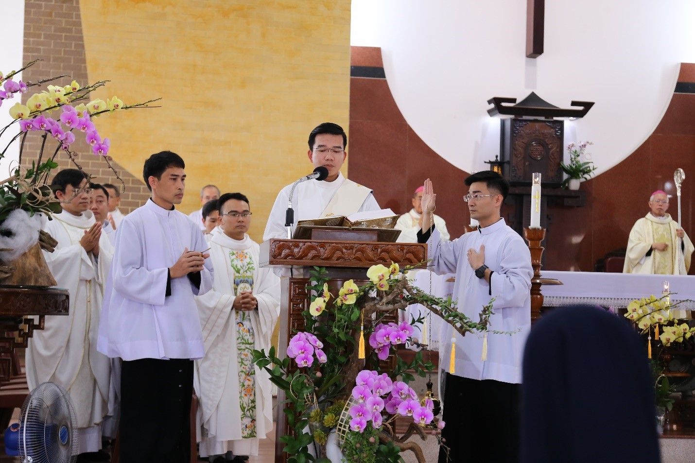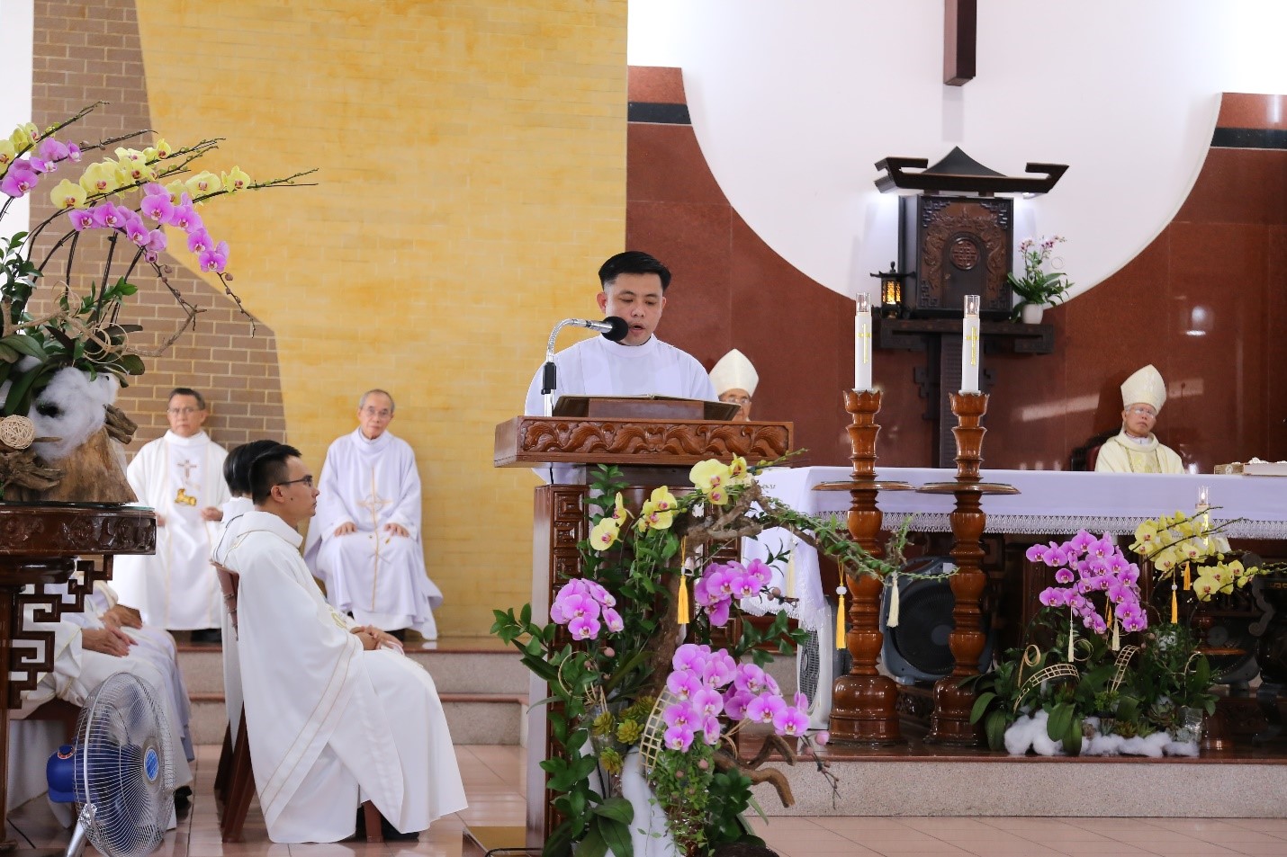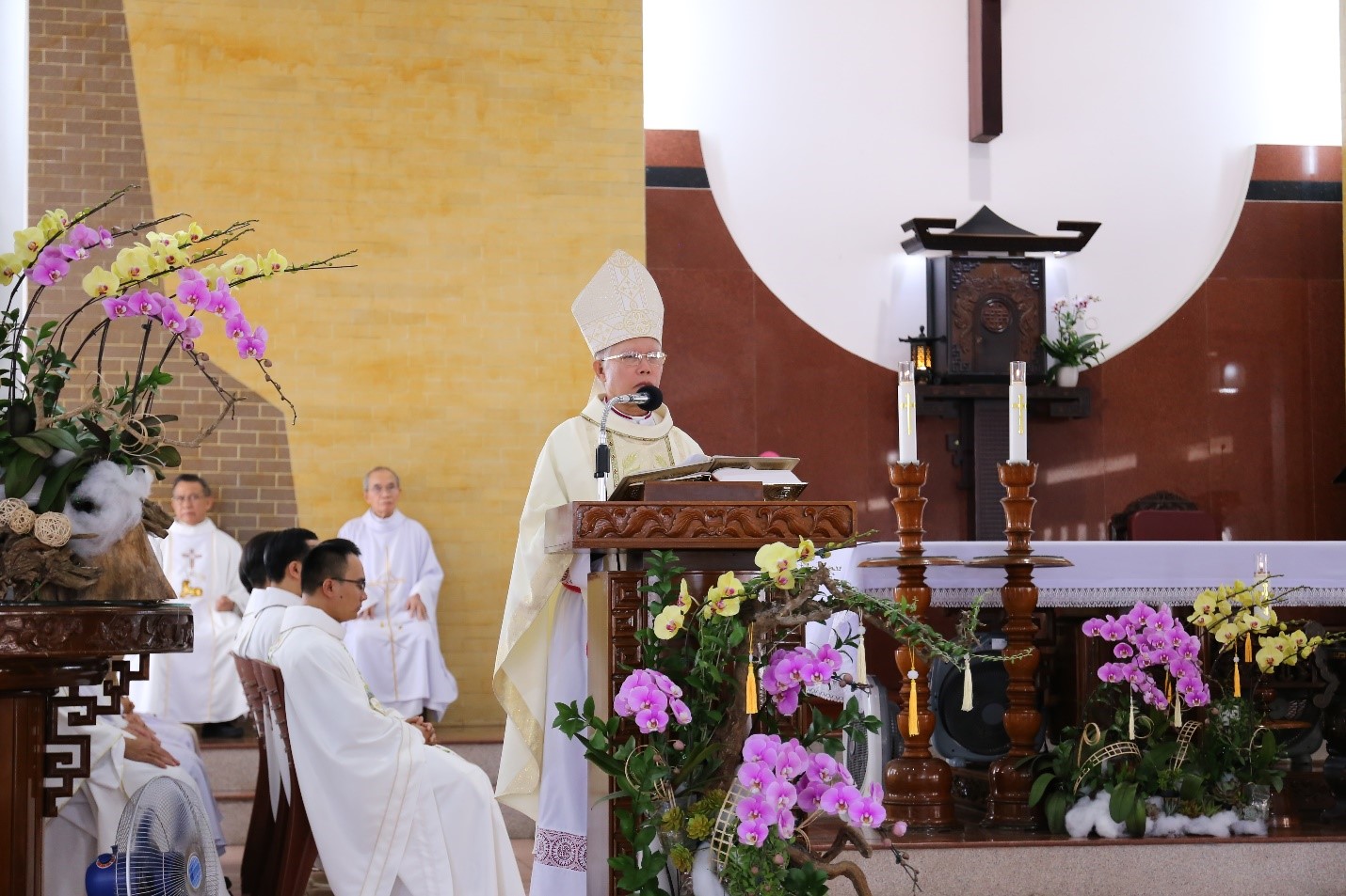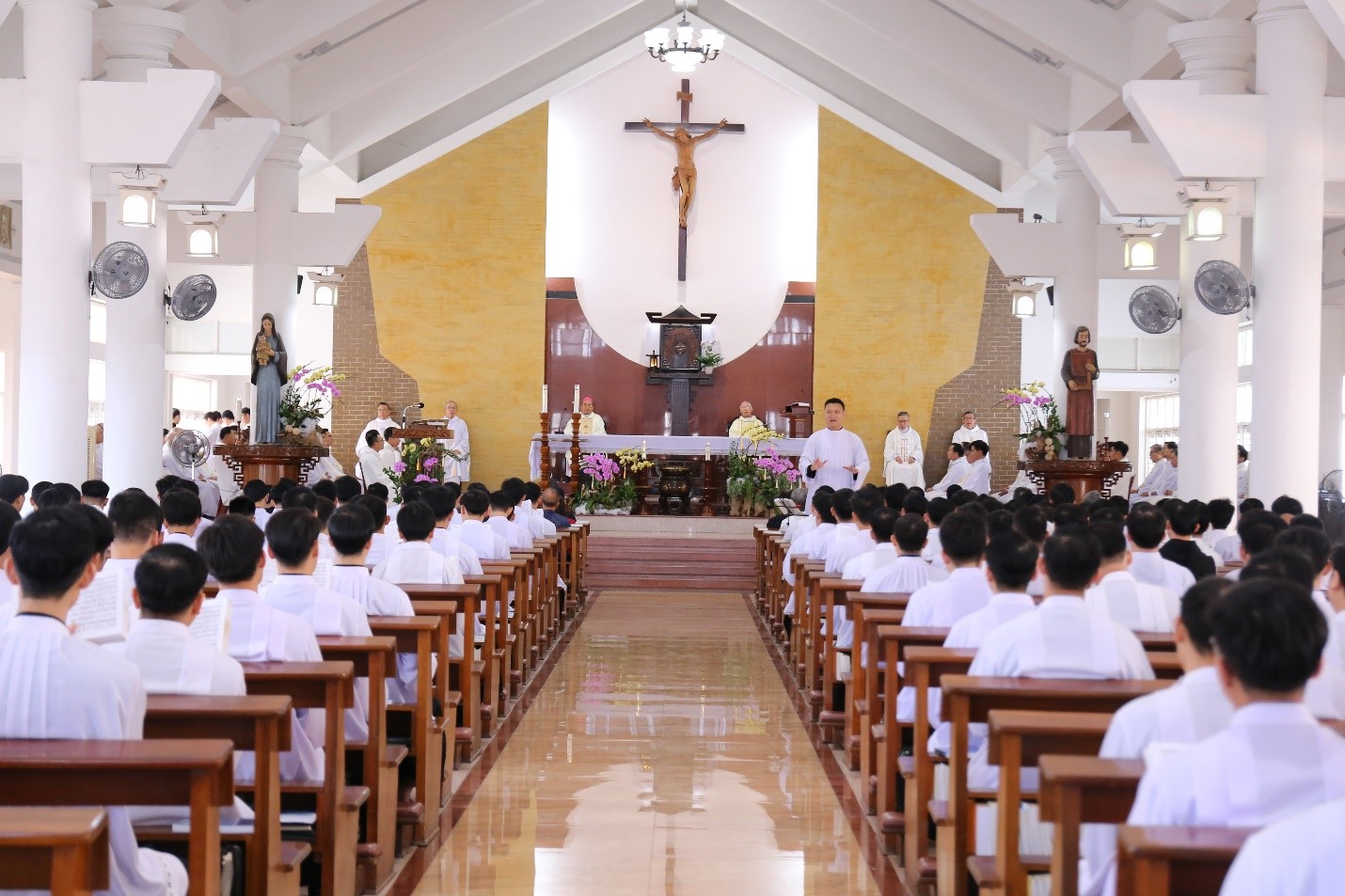 Thánh lễ do Đức cha Giuse Huỳnh Văn Sỹ, Giám mục Giáo phận Nha Trang chủ tế. Cùng đồng tế có Đức cha Giuse Võ Đức Minh, nguyên Giám mục Giáo phận Nha Trang, quý Cha trong Ban Giám đốc, quý Cha giáo và quý Cha cựu học viên. Thánh lễ được cử hành trong tâm tình biết ơn vì những ân ban mà Thiên Chúa tuôn đổ trên Đại Chủng viện trong năm 2025, cũng như trên đời sống đức tin và ơn gọi của từng người.