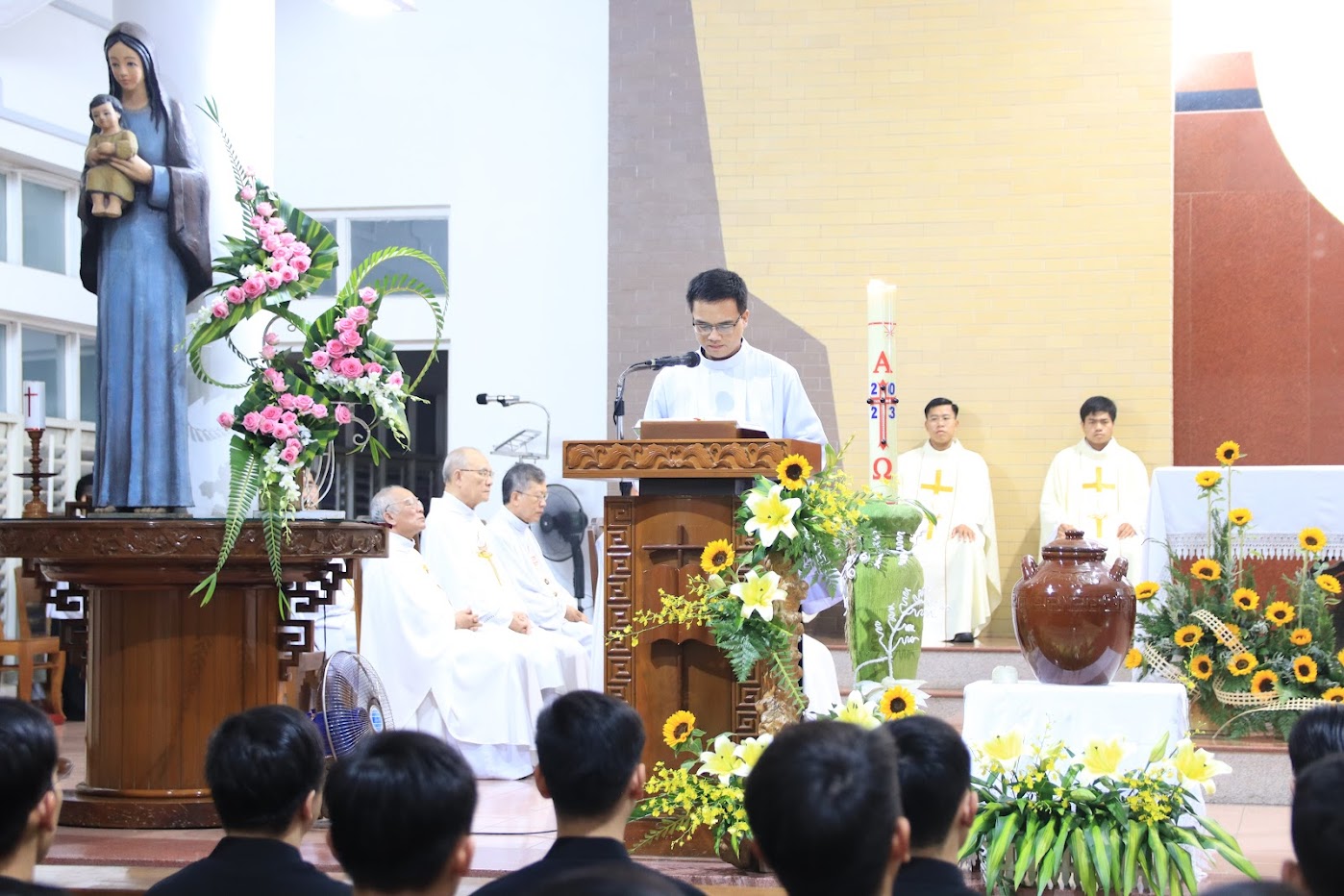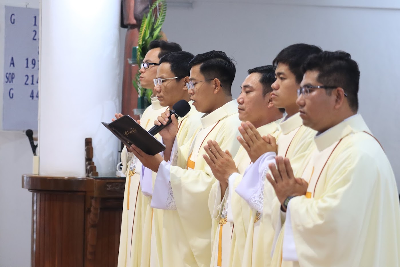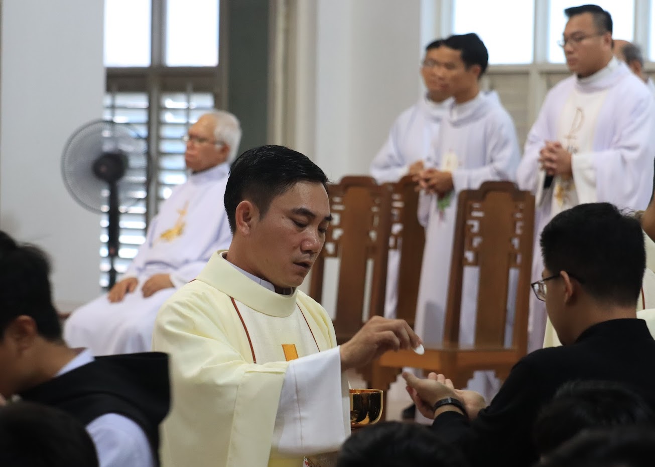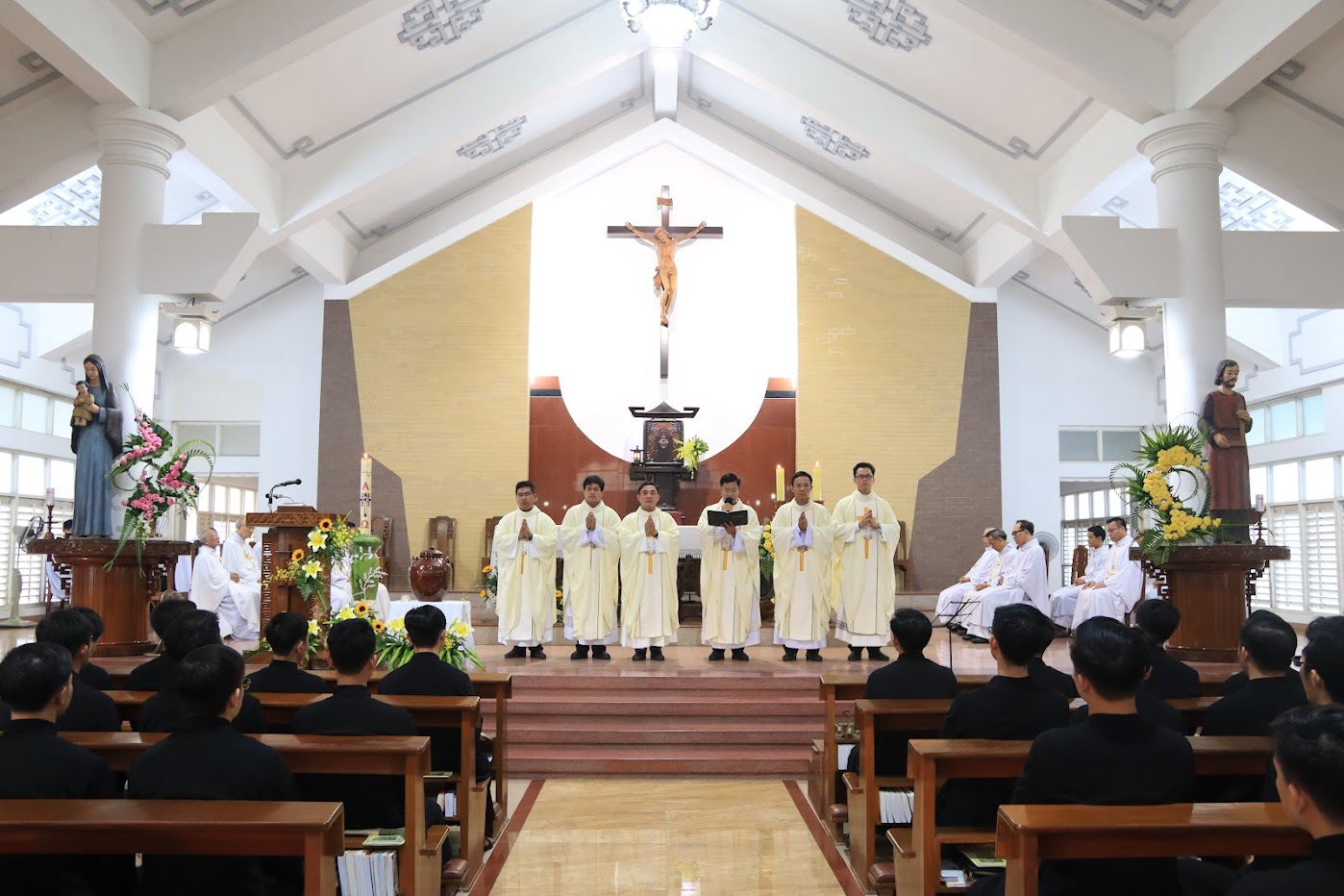 Quý tân linh mục đã được Đức cha Matthêô Nguyễn Văn Khôi, Giám mục Giáo phận Qui Nhơn đặt tay truyền chức linh mục tại Nhà thờ Chính Tòa Qui Nhơn vào ngày 12 tháng 4 vừa qua: cha Phaolô Trần Ngọc Hiệp, cha Giuse Huỳnh Văn Huề, cha Phêrô Huỳnh Công Khánh, cha Phanxicô Xaviê Nguyễn Thành Tâm, cha Giuse Huỳnh Thanh Thịnh và cha Phanxicô Xaviê Trần Đình Trọng. Hôm nay, Chủng viện cũng hiệp thông cầu nguyện và tạ ơn nhân dịp kỷ niệm 52 năm hồng ân thiên chức linh mục của Đức cha Giuse Võ Đức Minh, nguyên Giám mục Giáo phận Nha Trang.