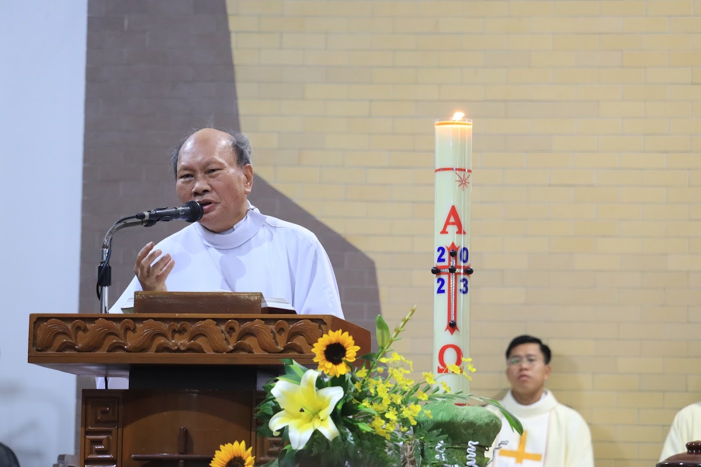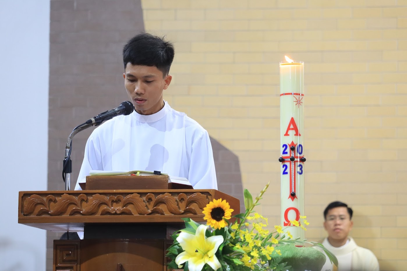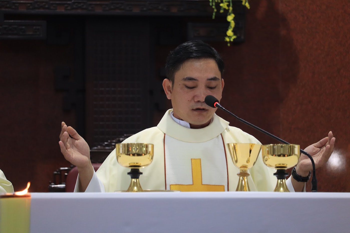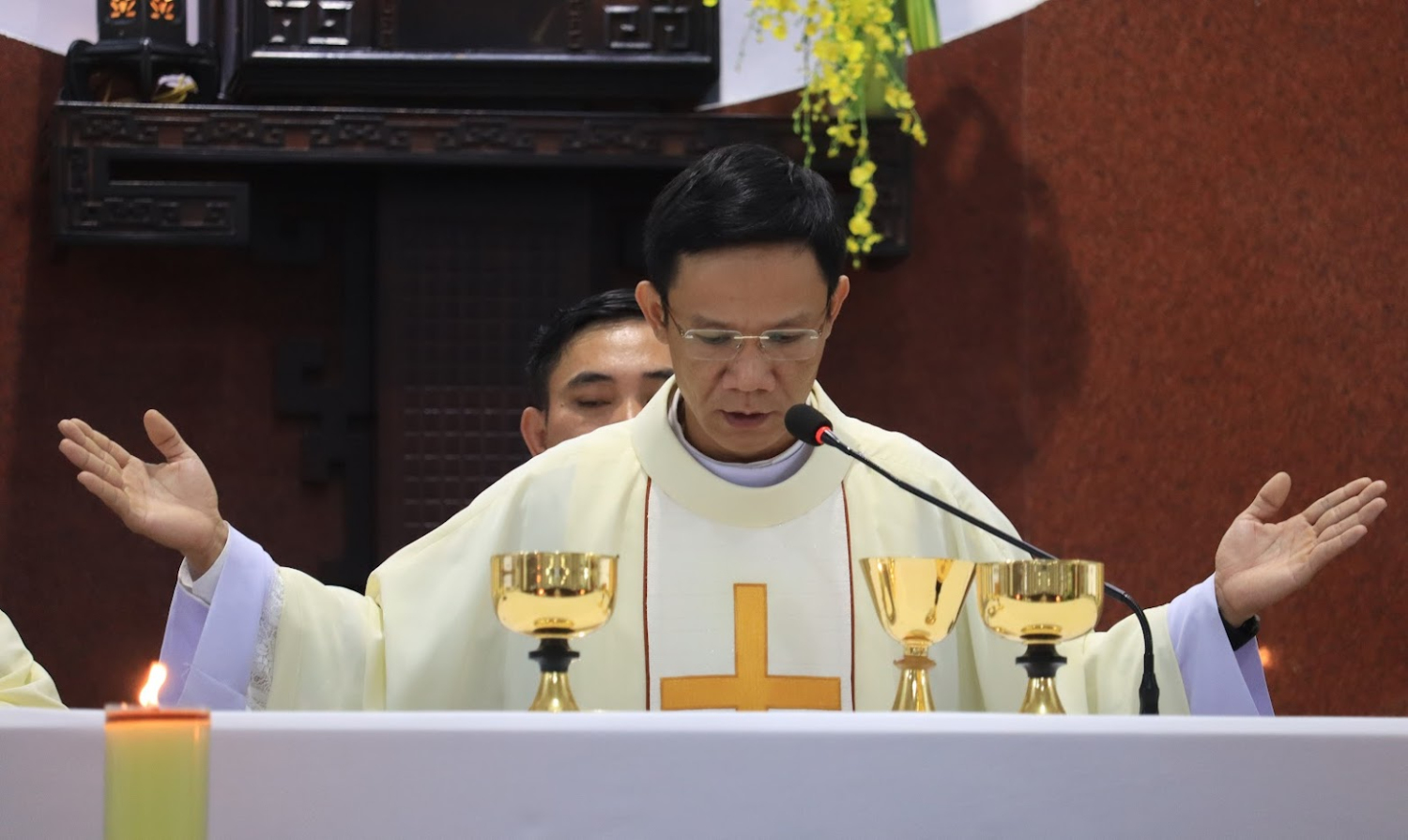 Sau lời nguyện hiệp lễ, đại diện quý tân linh mục đã bày tỏ tâm tình tri ân với Cha Giám đốc Đại Chủng viện, quý cha giáo, anh em chủng sinh và quý nữ tu, cô chú trong Ban đời sống của Chủng viện.