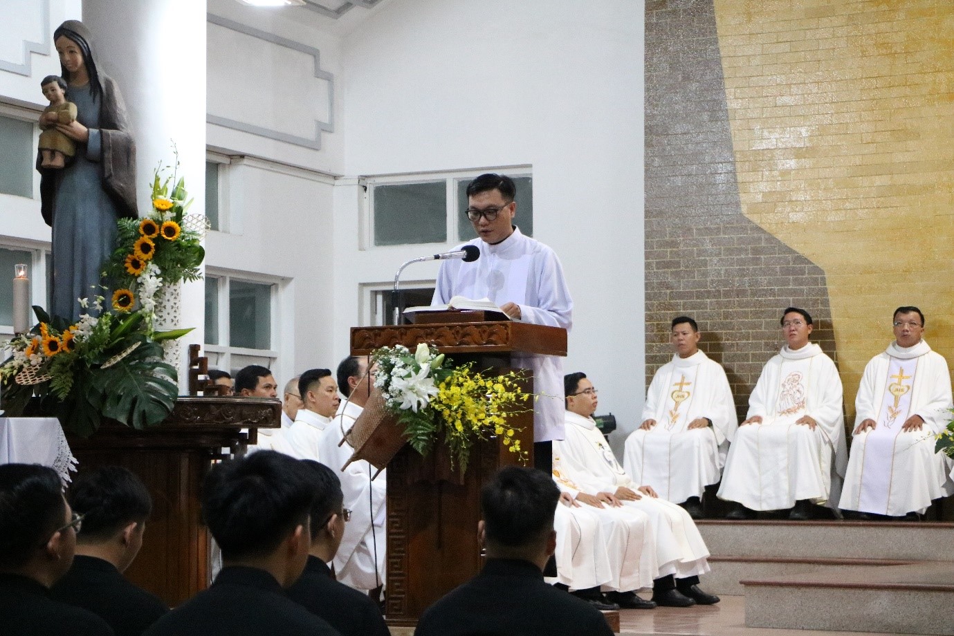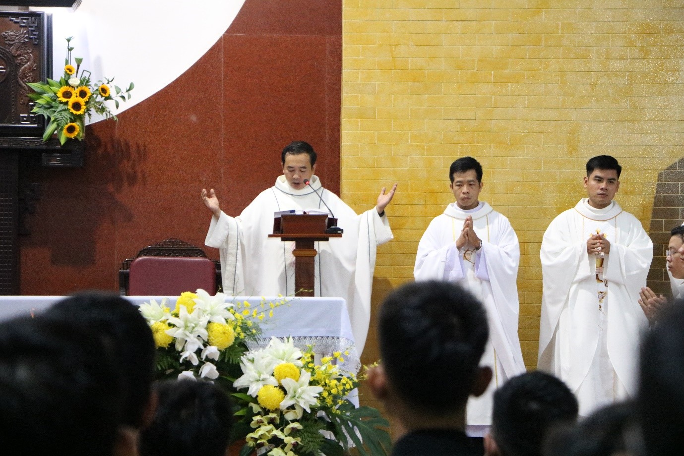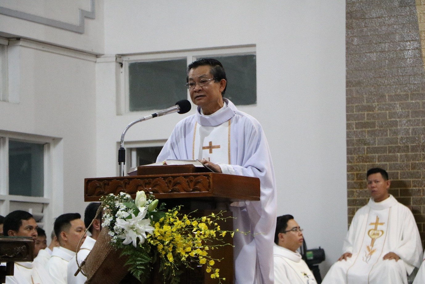 Trong bài giảng lễ, cha giáo Phêrô Trần Ngọc Anh ân cần huấn dụ quý tân chức: “Anh em hãy trở nên mục tử nhân hậu, đầy lòng xót thương, vì thánh chức linh mục là hồng ân quý báu Chúa trao ban cho Dân Người”. Cha giáo mượn hình ảnh thánh Phêrô làm kim chỉ nam cho cuộc đời linh mục của các tân chức: yếu đuối nhưng được thương xót, vấp ngã mà vẫn được trao phó đàn chiên. Thánh Tông đồ Phêrô nhận ra sự mong manh, yếu đuối của phận người và tình yêu bao la mà Thiên Chúa dành cho nhân loại.