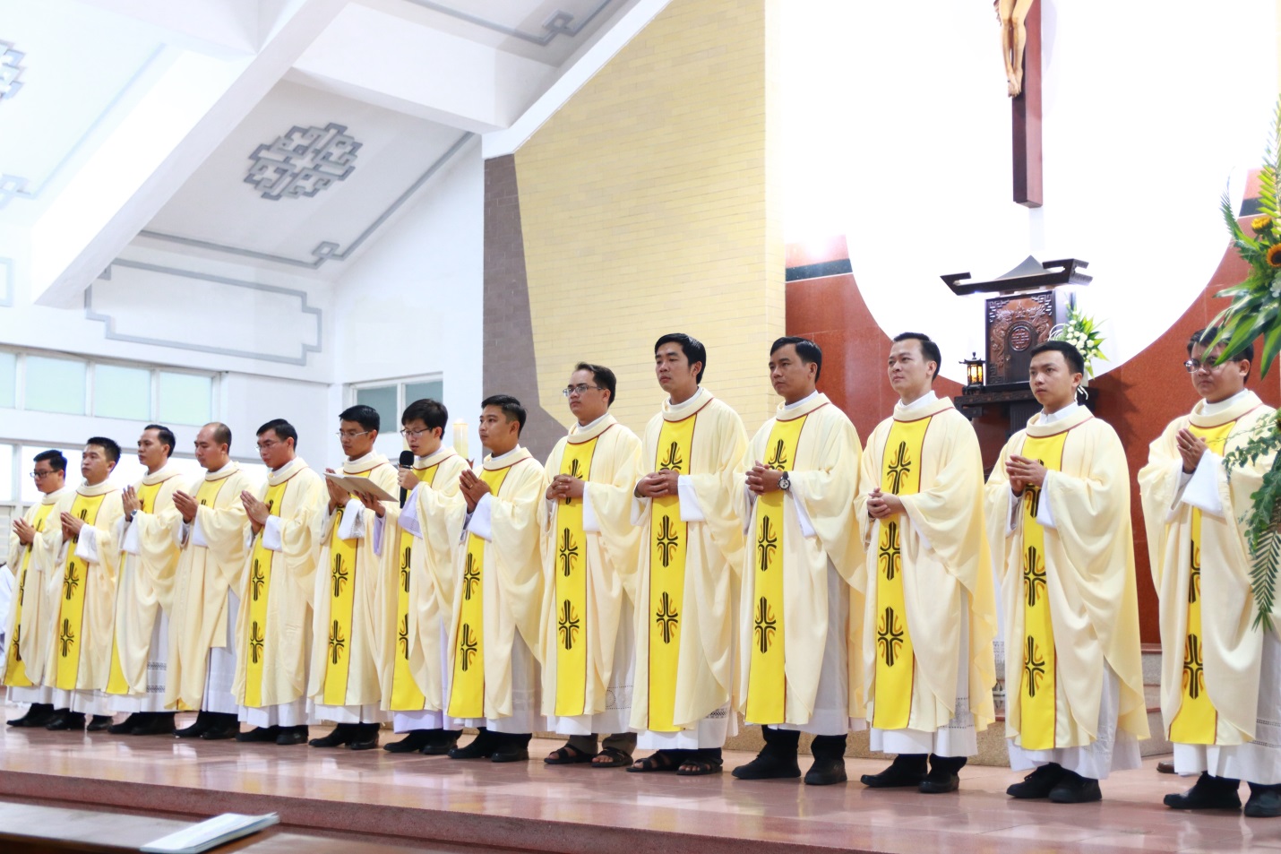 Quý tân linh mục đã được Đức cha Giuse Huỳnh Văn Sỹ, Giám mục Giáo phận Nha Trang, truyền chức linh mục tại Nhà thờ chính toà Giáo phận vào ngày 12 tháng 7 vừa qua. Đây cũng là những linh mục đầu tiên mà Đức cha tân nhiệm Giuse đặt tay truyền chức trong sứ vụ giám mục ngay sau lễ tấn phong của ngài (27/6/2023). Hôm nay, các cha mới trở về chủng viện với niềm hân hoan tạ ơn vì hồng ân thánh chức đã lãnh nhận, và vì chặng đường đào luyện suốt 8 năm tại Đại Chủng viện Sao Biển với nhiều cố gắng của quý cha giáo cũng như của bản thân các tân chức.