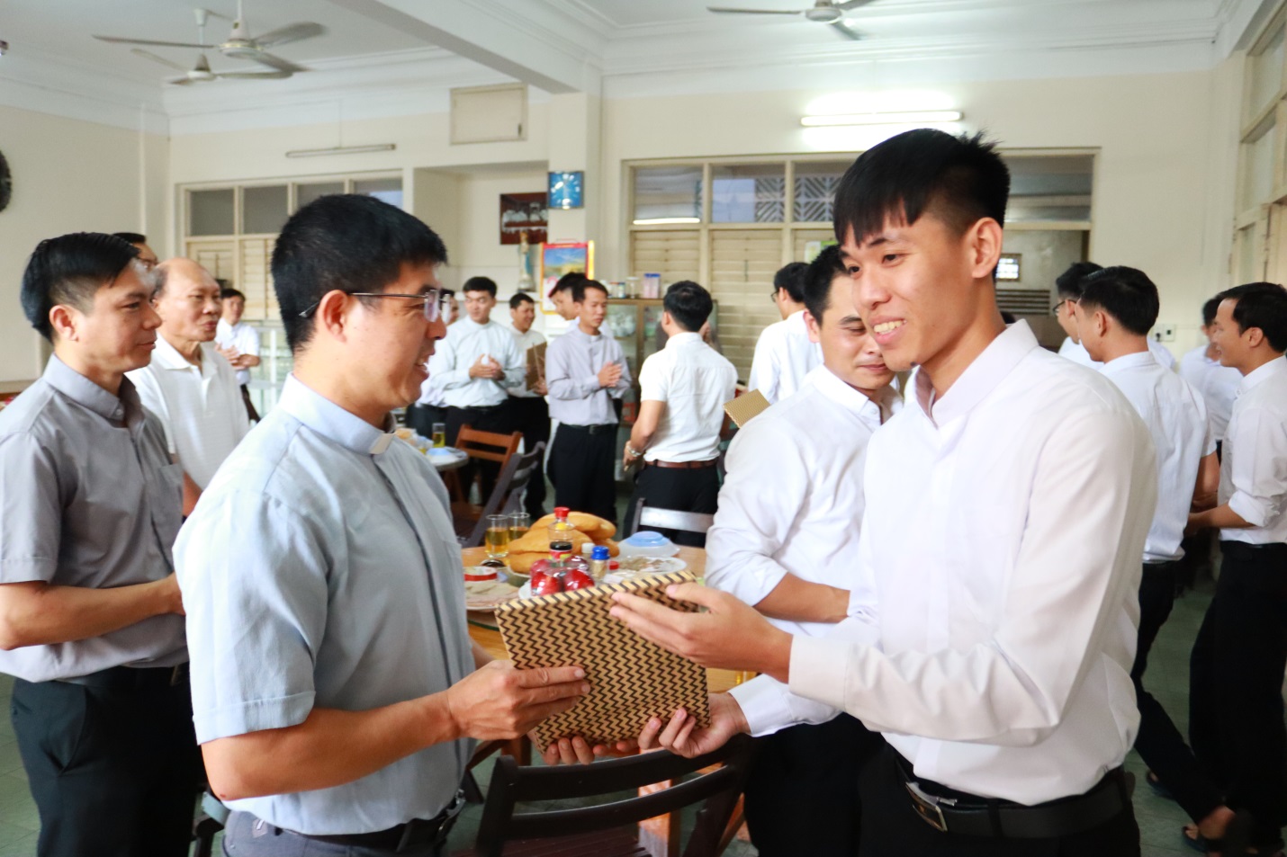 Sau lời cám ơn của các tân chức, Cha Giám đốc Học viện Thần học, Gioan Bosco Cao Tấn Phúc, đã trao bằng cử nhân thần học (STB) của Đại học Giáo hoàng Urbaninana Rôma cho 4 tân linh mục đã tham dự kỳ thi vào cuối niên khóa 2021-2022.