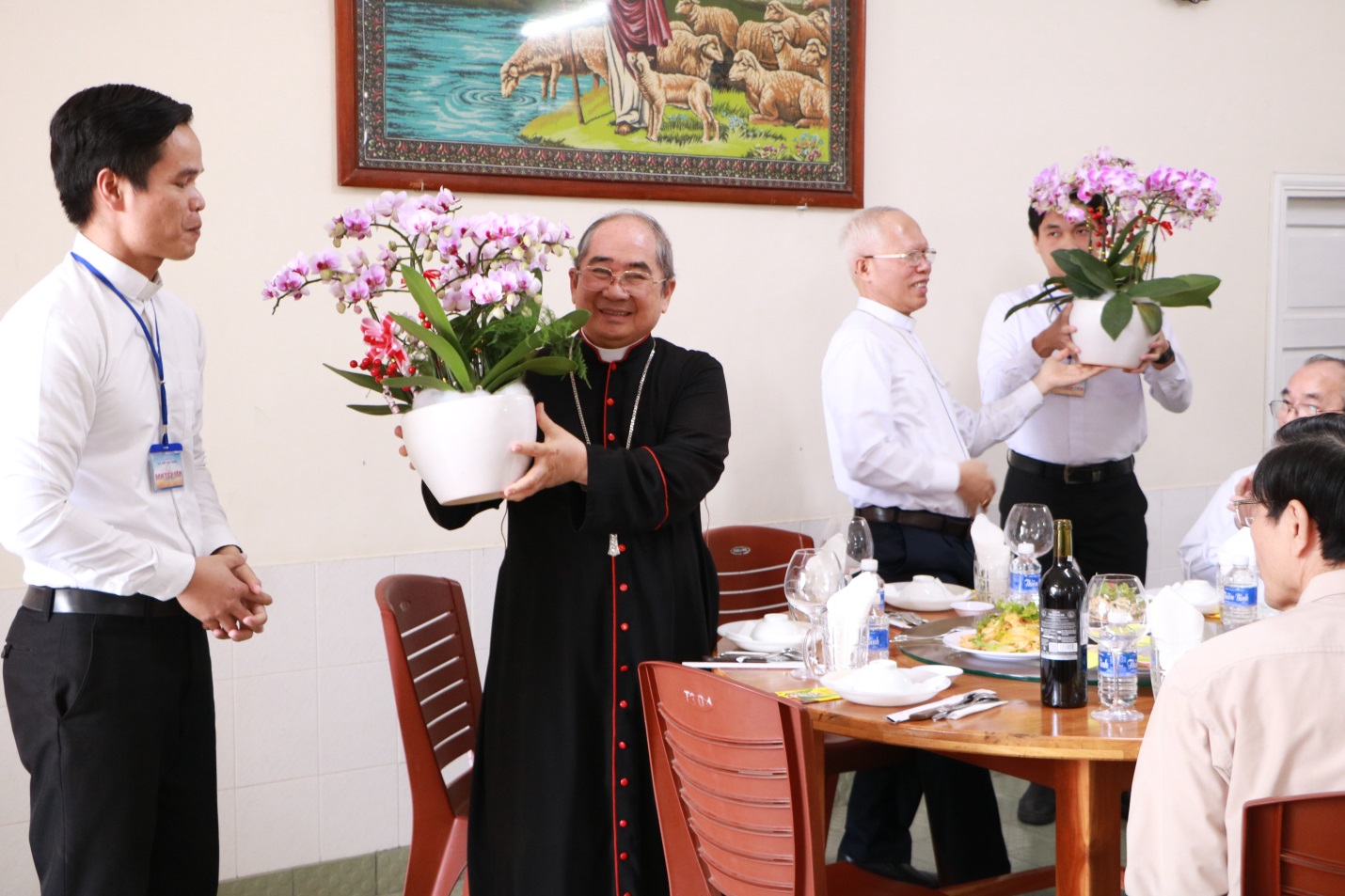 Sau thánh lễ là bữa ăn tất niên để quý Đức cha và quý cha, anh em chủng sinh và quý khách có những giây phút gặp gỡ thân mật thăm hỏi và mừng năm mới. Đại diện các chủng sinh đã chúc tết Đức cha Giuse Giám mục Giáo phận và cộng đoàn hiện diện, năm mới an khang, sức khỏe, lộc thánh chứa chan, bình an, và hạnh phúc trong suốt năm Giáp Thìn 2024.