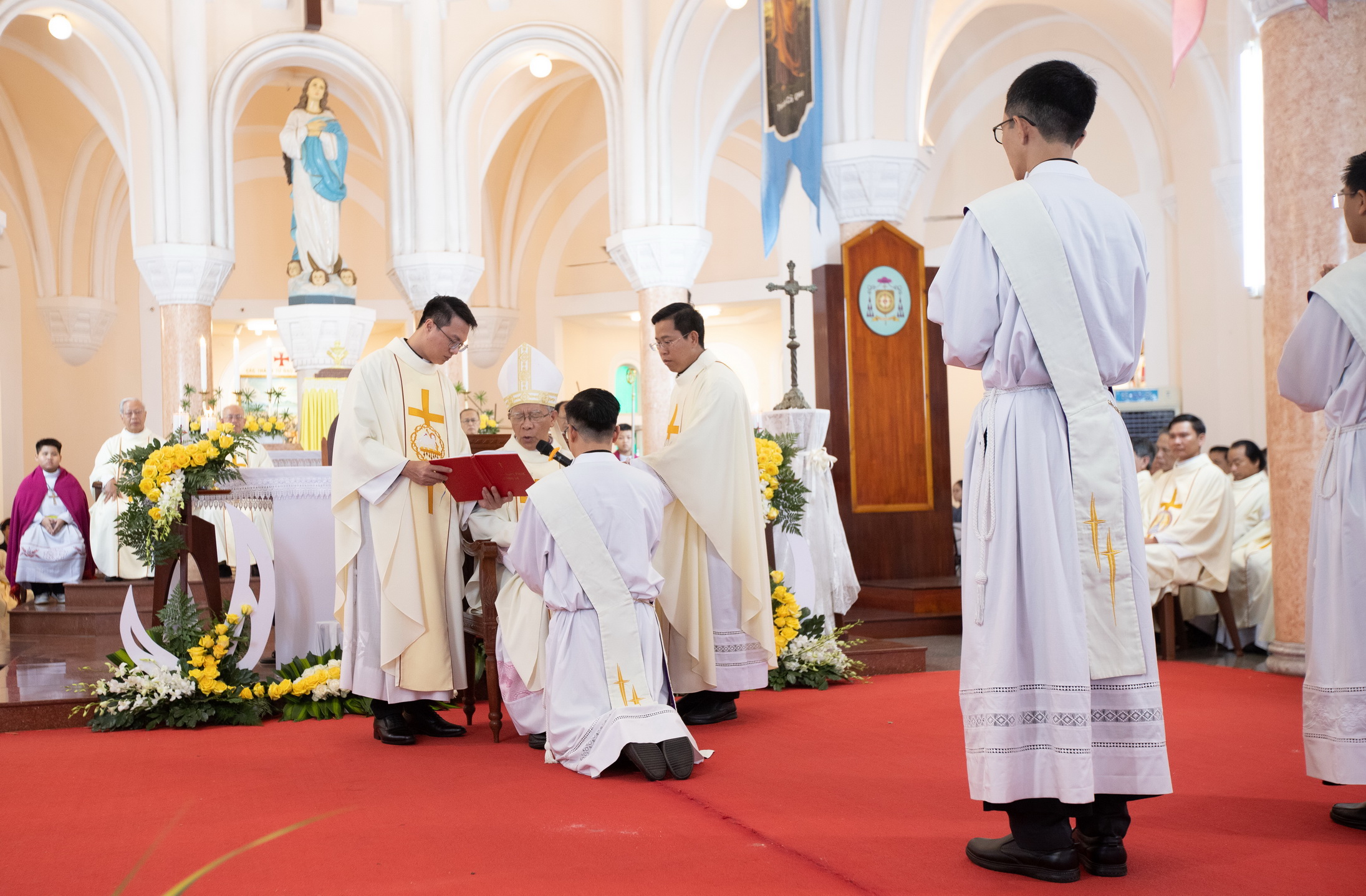 Hiện diện trong Thánh lễ có Cha Tổng Đại diện Giáo phận Qui Nhơn, quý Cha Đại Chủng Viện Sao Biển, quý Cha trong và ngoài Giáo phận, cùng đông đảo cộng đoàn Dân Chúa.
