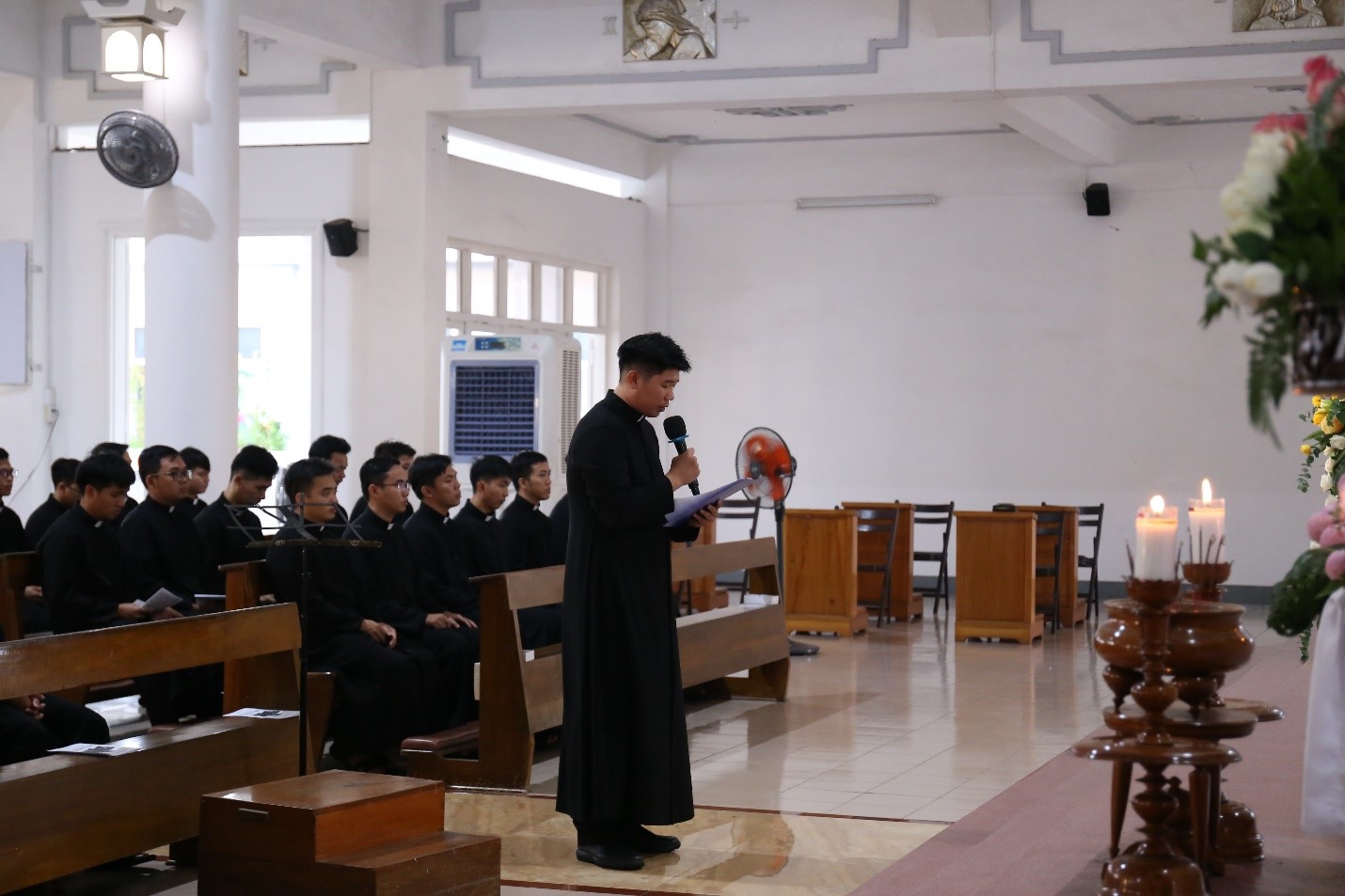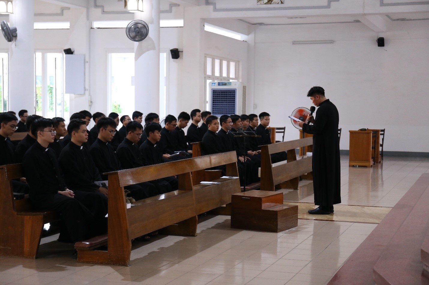 Trước khi đón nhận phép lành, Thầy lớp trưởng đại diện gửi lời cảm ơn đến Cha đồng hành, quý Cha đồng tế, và cộng đoàn.