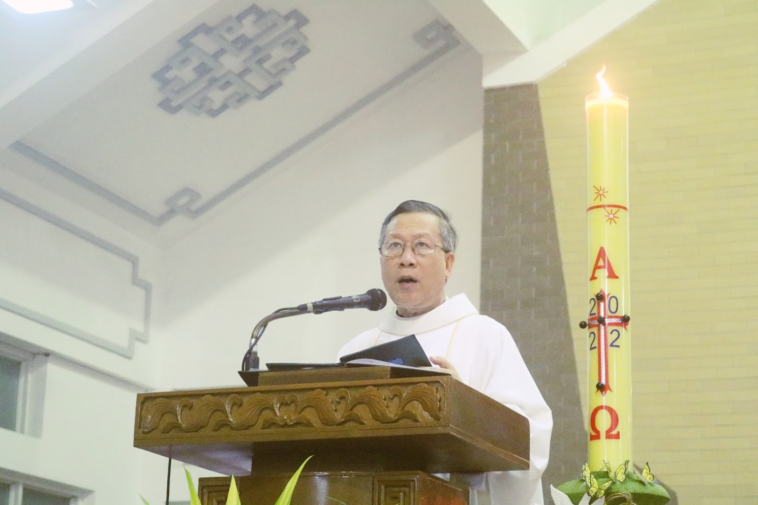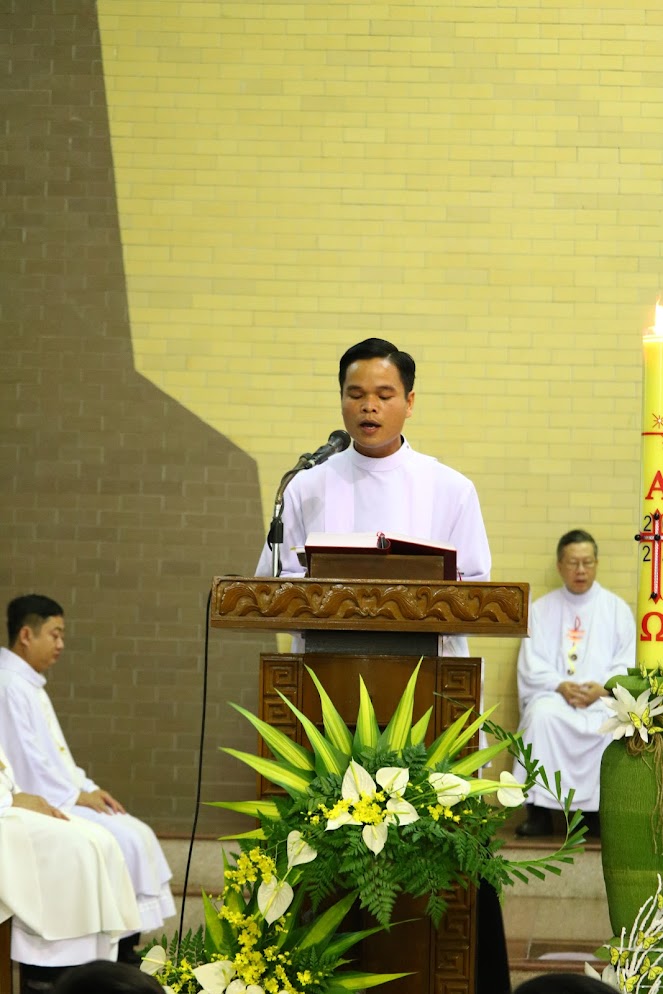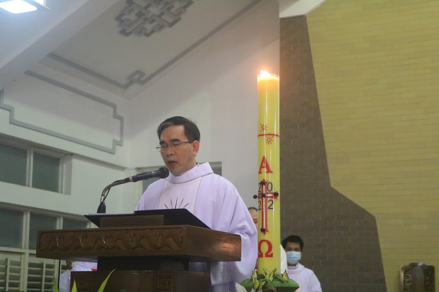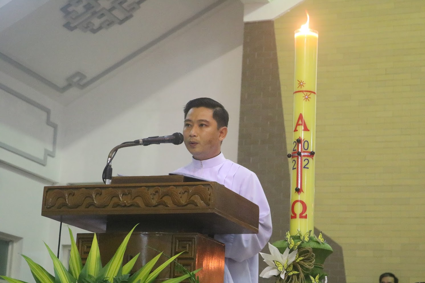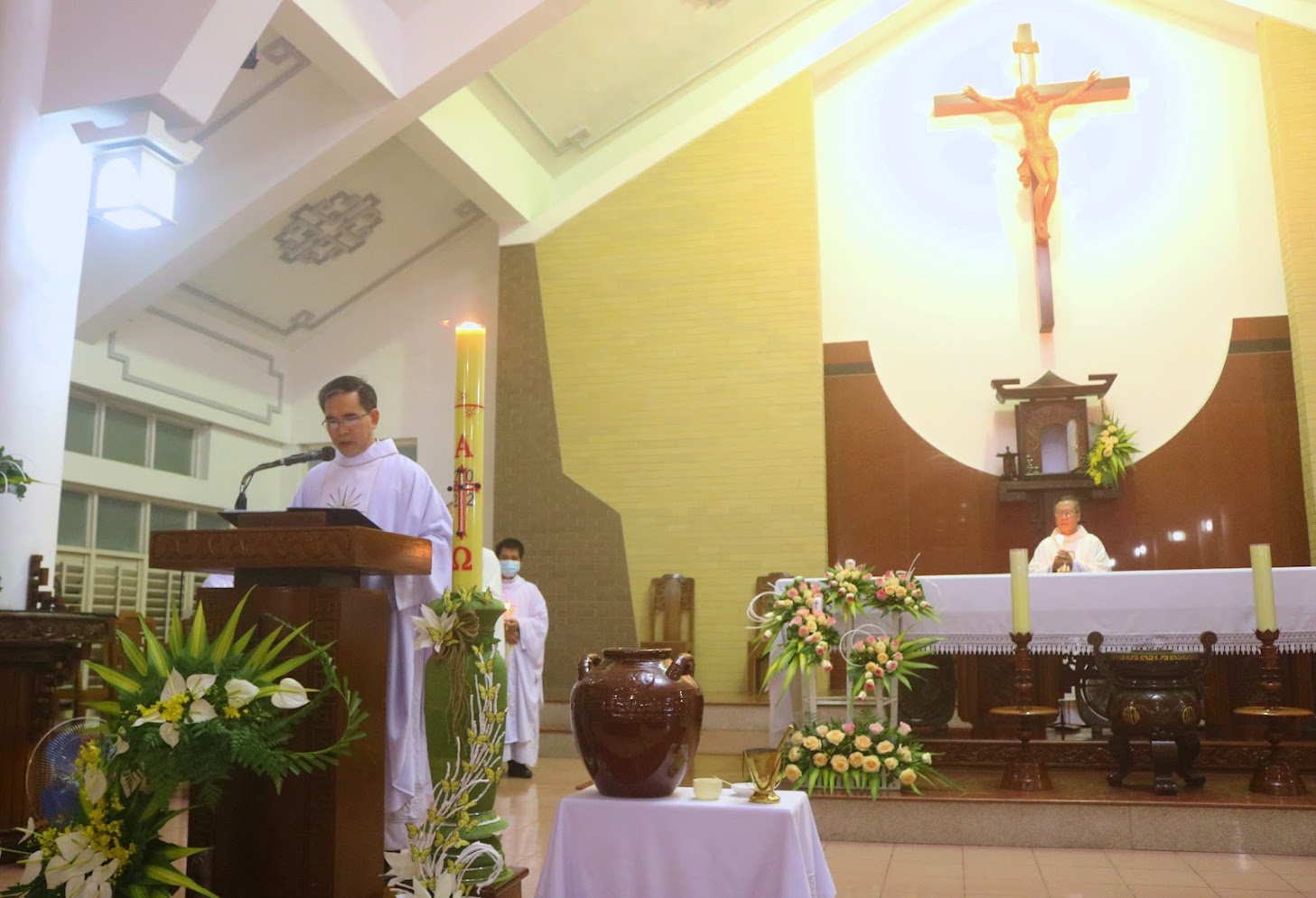 Giảng trong Thánh lễ hôm nay, Cha Phó Giám đốc Gioan Bosco Cao Tấn Phúc diễn tả lại tâm trạng bi ai sụp đổ của các tông đồ trước cái chết thập giá của Thầy Giêsu. Đứng trước ngôi mộ trống, Gioan đã thấy và đã tin. Niềm tin vào Đấng Phục sinh của con người hôm nay cũng phải trải qua nhiều thử thách. Phục sinh nào cũng đòi hỏi những hy sinh và chung phần với con đường thập giá. Làm chứng cho niềm tin Kitô cũng là chấp nhận mạo hiểm, dám hy sinh vì những điều thiện hảo, cho dù có bị thế gian phản bội hay đánh lừa.