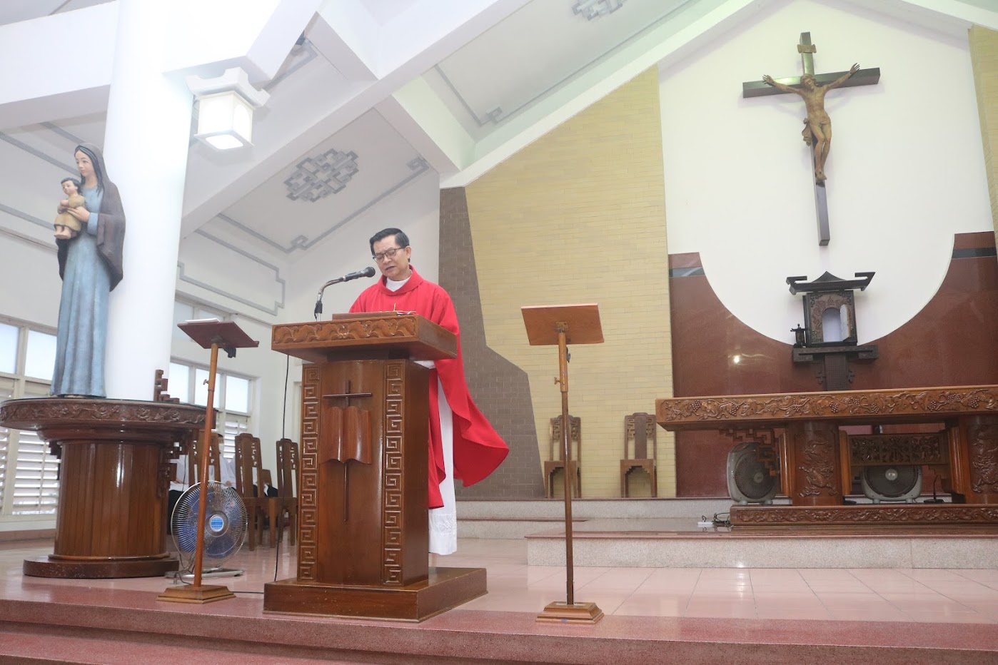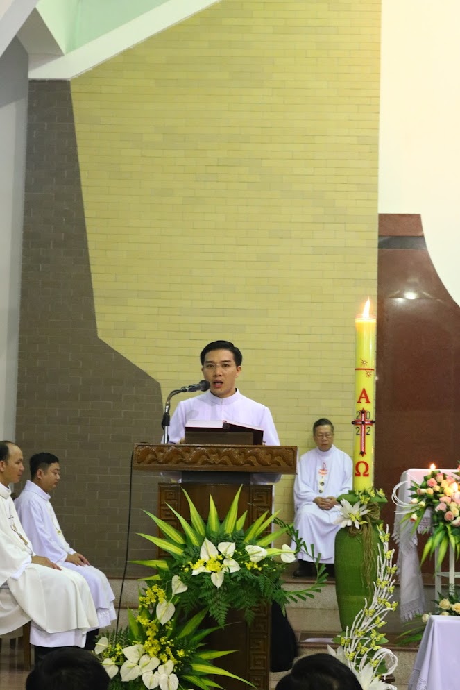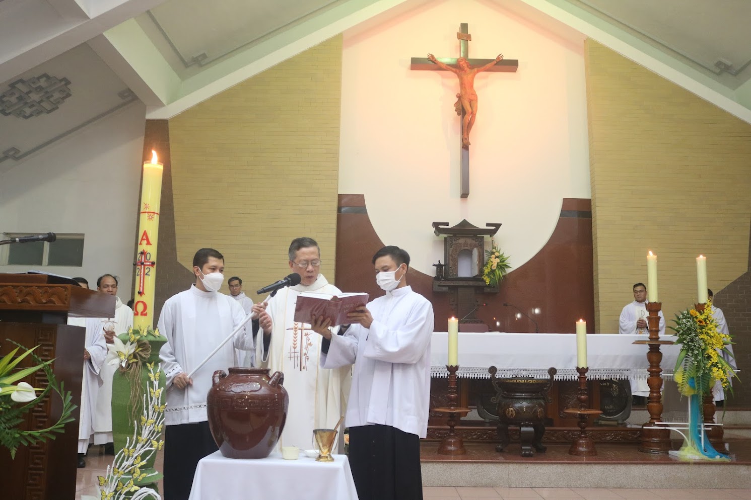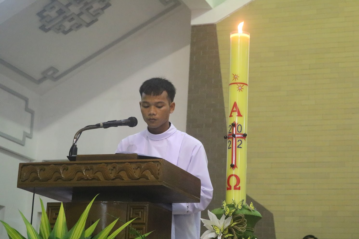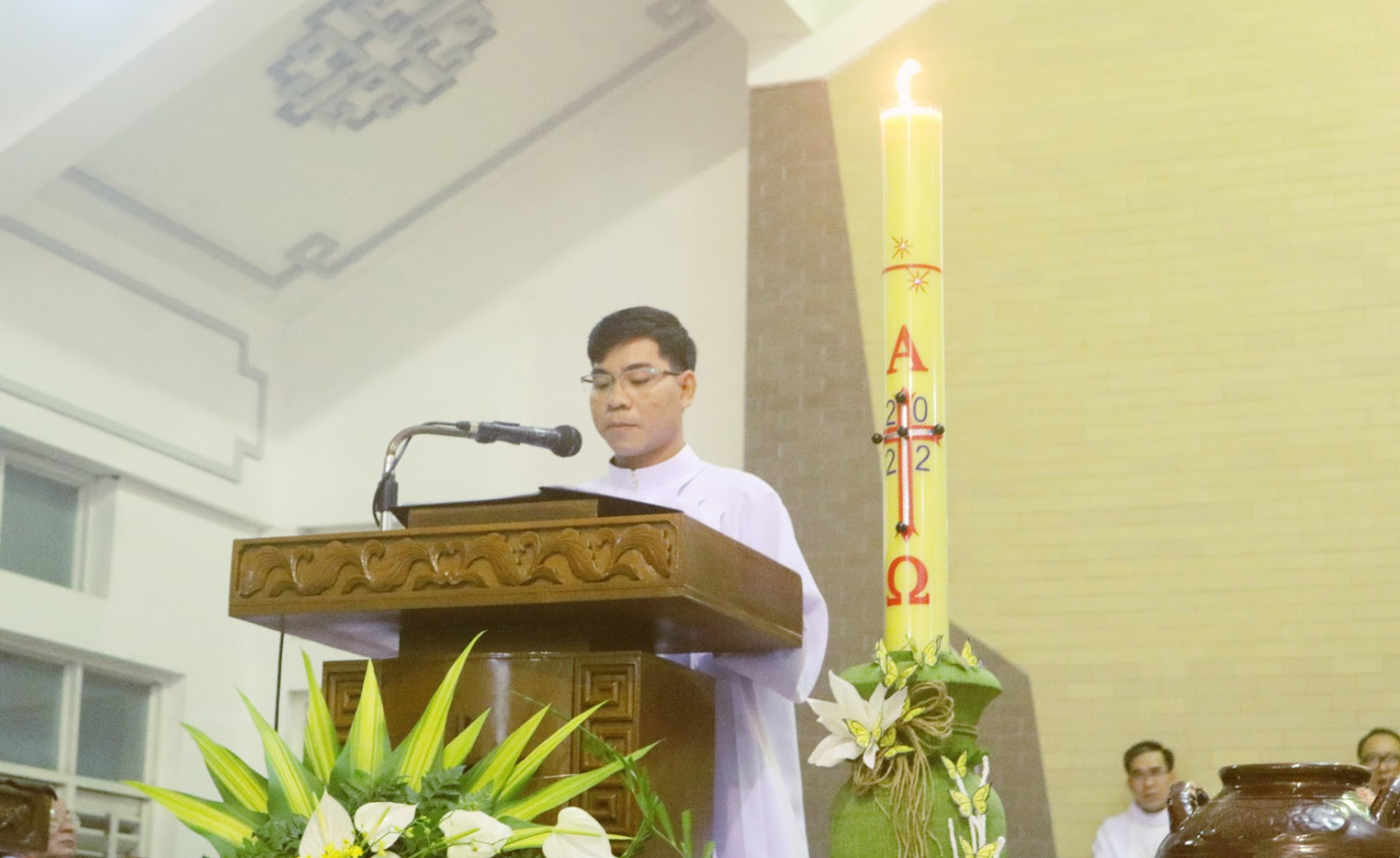 Giảng trong Thánh lễ hôm nay, Cha Phó Giám đốc Gioan Bosco Cao Tấn Phúc diễn tả lại tâm trạng bi ai sụp đổ của các tông đồ trước cái chết thập giá của Thầy Giêsu. Đứng trước ngôi mộ trống, Gioan đã thấy và đã tin. Niềm tin vào Đấng Phục sinh của con người hôm nay cũng phải trải qua nhiều thử thách. Phục sinh nào cũng đòi hỏi những hy sinh và chung phần với con đường thập giá. Làm chứng cho niềm tin Kitô cũng là chấp nhận mạo hiểm, dám hy sinh vì những điều thiện hảo, cho dù có bị thế gian phản bội hay đánh lừa.