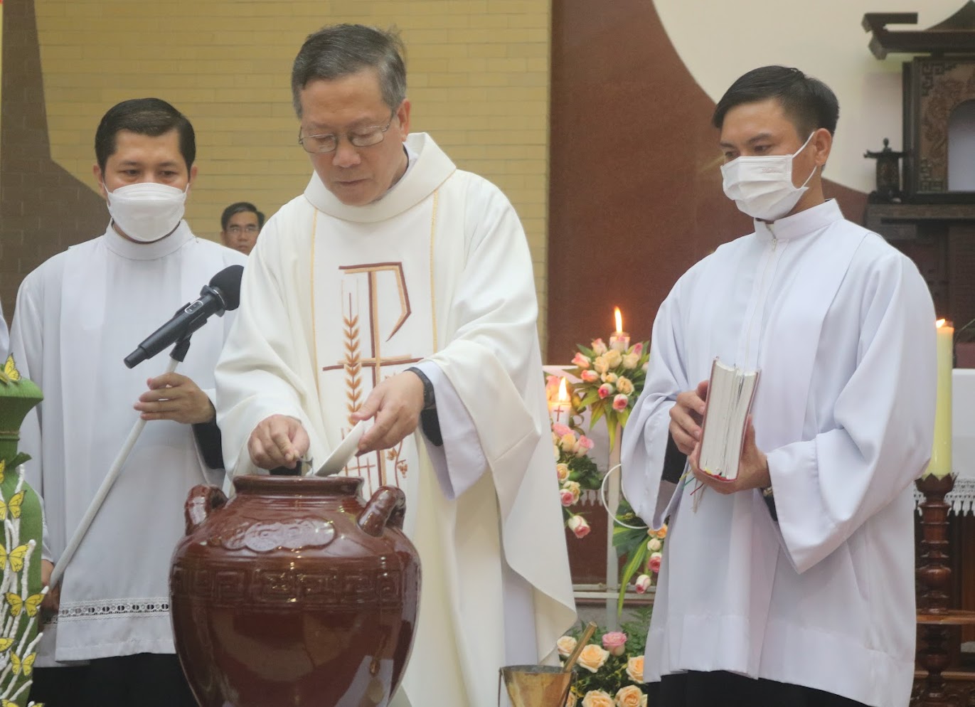 Sau bài diễn giảng, Linh mục chủ tế kêu gọi cộng đoàn lặp lại lời tuyên xưng đức tin khi lãnh nhận bí tích Thánh Tẩy và rảy nước thánh trên mọi người.