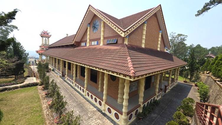 Từ xa, nhà thờ đã hiện lên với dáng vẻ khác biệt. Không phải những mái vòm Gothic cao vút quen thuộc của thánh đường phương Tây, mà là mái ngói cong, đầu đao uốn lượn như những đình làng cổ. Ngay từ cổng vào, hình ảnh tam quan, biểu tượng quen thuộc trong kiến trúc đình, chùa Việt, đã mở ra một không gian vừa trang nghiêm, vừa gần gũi.